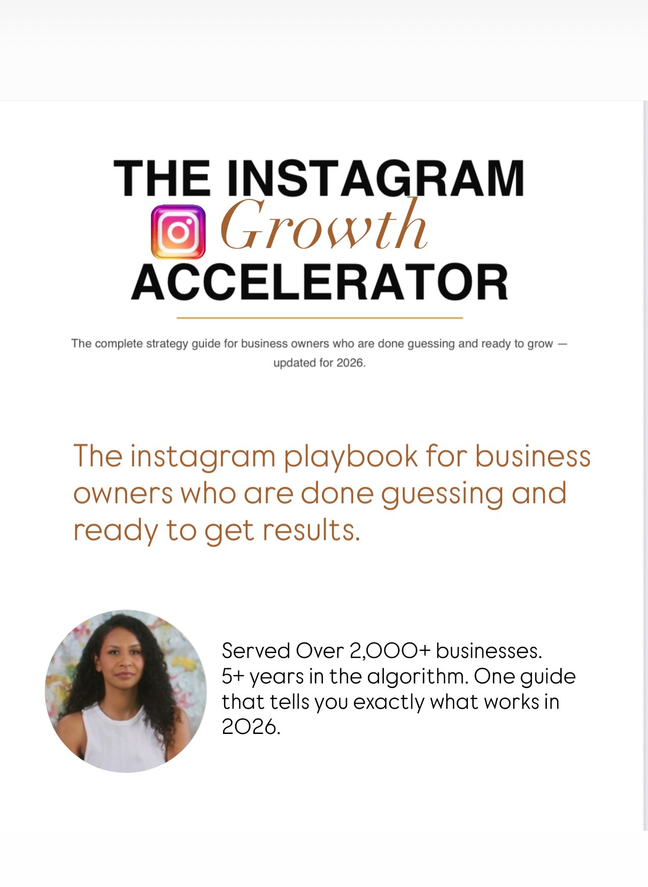 The Instagram Growth Accelerator is the complete 2026 strategy guide for business owners who are done guessing and ready to actually grow. not more content ideas. not a 30-day challenge. a real system built from 5+ years of working inside 2,000+ businesses that tells you exactly what to do, why it works, and how to make Instagram work for your business.