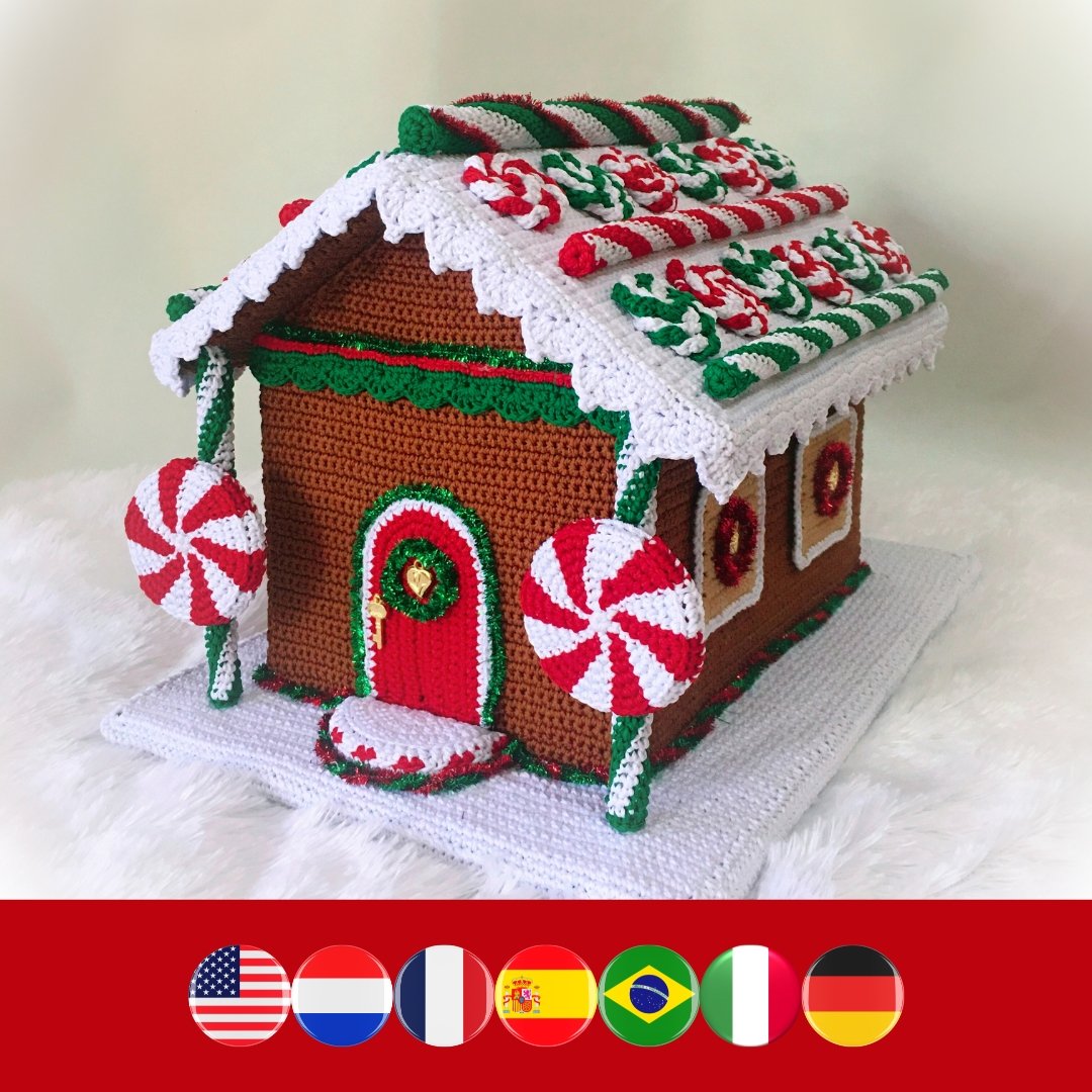 This house is 26H x 27W x 37D (cm) or 10.3H x 10.6W x 14.5D (inch). It is made with “FINGERING” weight yarn suitable for amigurumi and a size 2mm crochet hook.