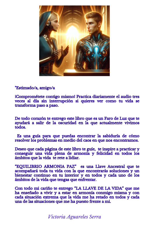 A medida que vayas avanzando, irás experimentando resultados muy satisfactorios que querrás compartir conmigo si así lo deseas. Porque si lo haces tal y como indico, con este libro más los audios, tu vida se transformará radicalmente e irás logrando un bienestar continuo en todos los ámbitos de tu vida.