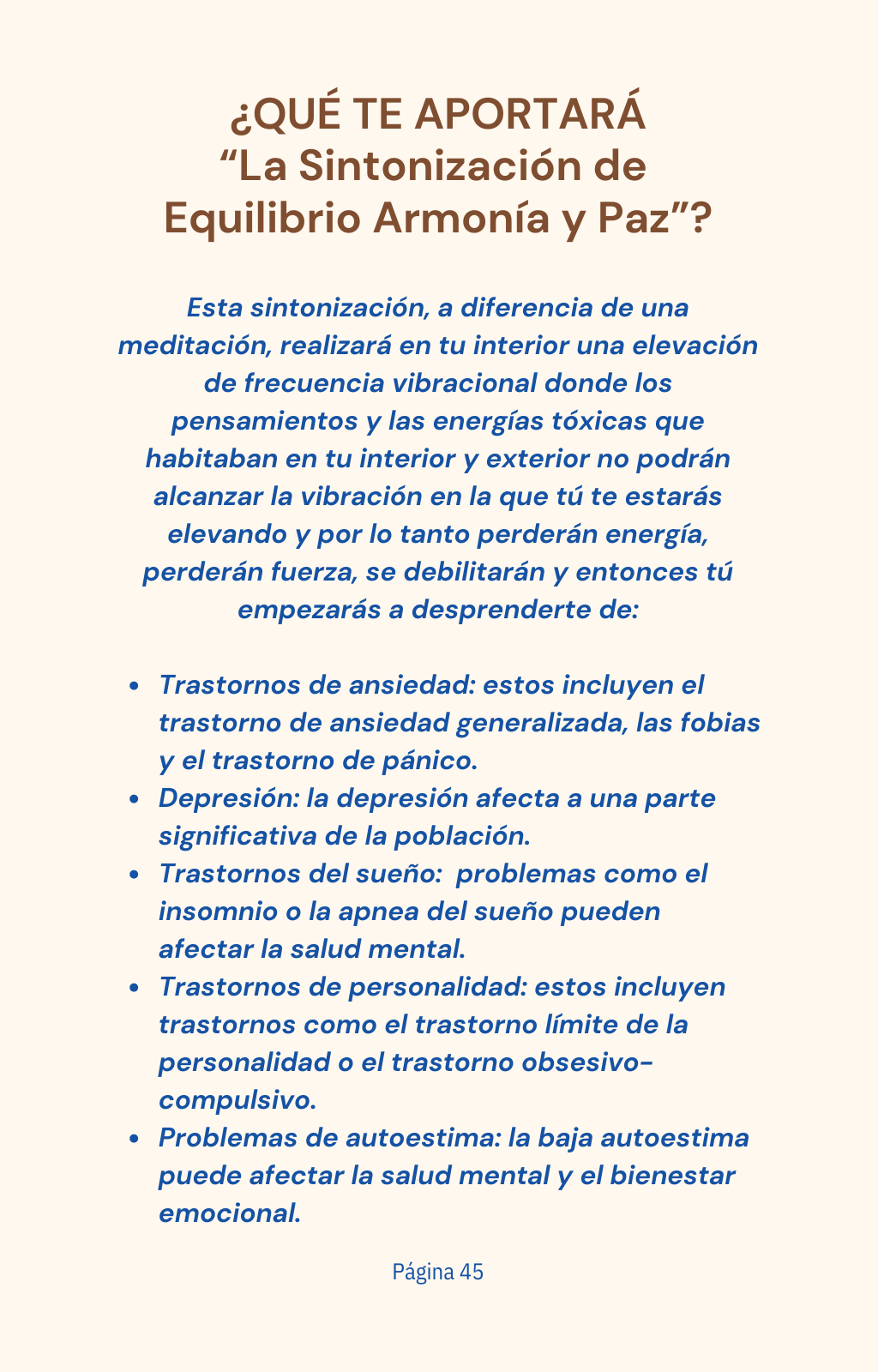 Este libro va acompañado de tres audios con la "Sintonización de EQUILIBRIO, ARMONÍA y PAZ" que te ayudarán con la práctica a investigar, comprobar y sentir los beneficios que te otorgará realizar la práctica 3 veces al día con estas grabaciones de audio.