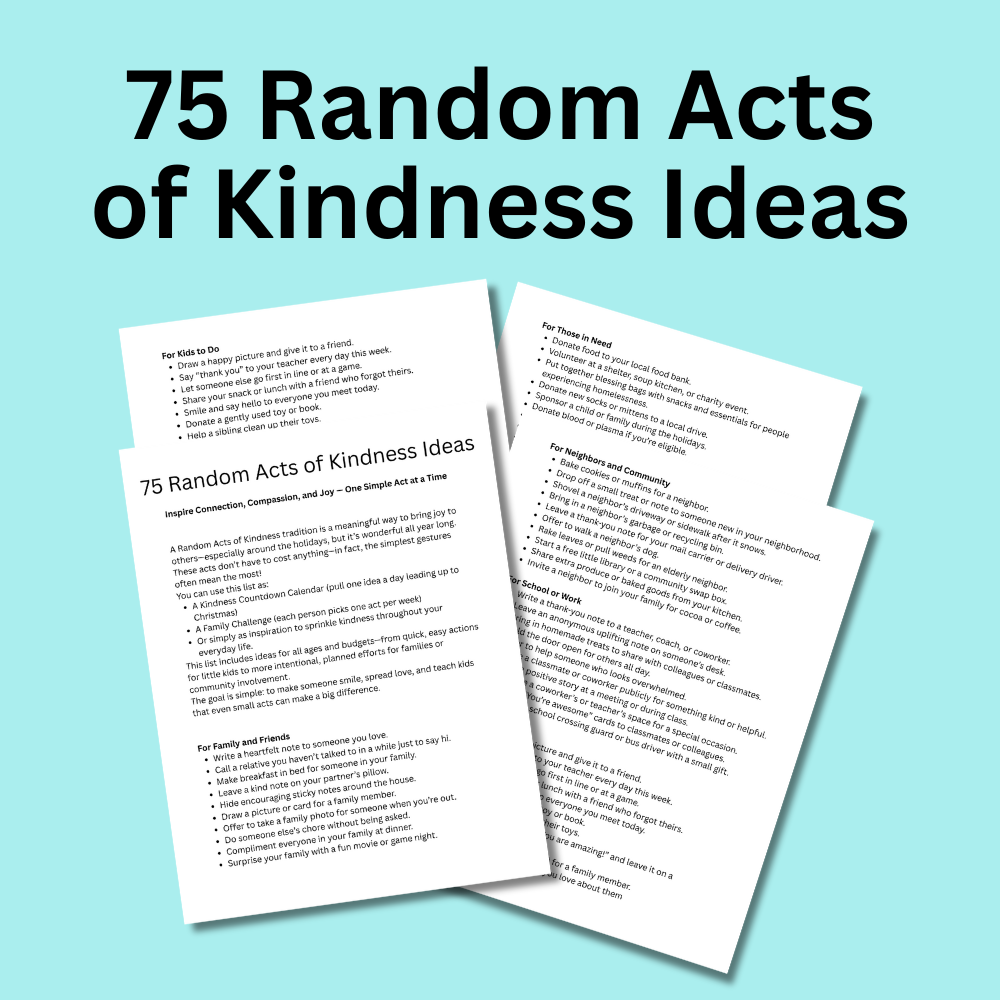 If you want to start a random acts of kindness countdown this Christmas, but don't have the bandwidth to think of things to do, this printable is for you. With 75 random acts of kindness ideas there's something everyone can do!