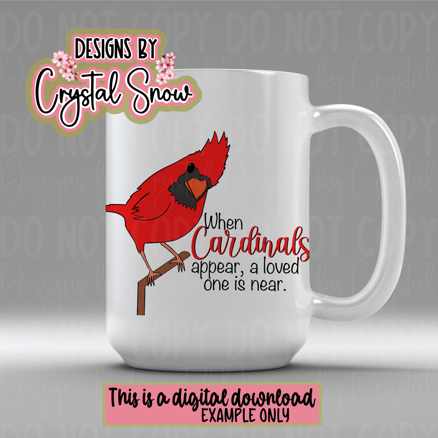 This Cardinals PNG Sublimation Design is a vibrant 300 DPI digital file — perfect for shirts, mugs, tumblers, stickers, memorial pieces, and all your cardinal-loving craft projects.