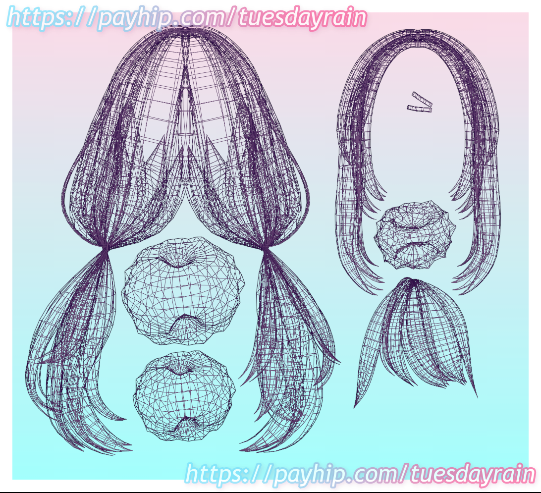 > Hair & Puffs mapped to CiCi's hair Cards. Metal clips lack a texture.