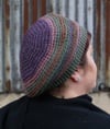 The Bryanston Beret is one of my earlier designs that has been reworked and is now available in 2 variations. The original 2 colour version (shown in khahi and burgundy) and a new ‘inside out’ (striped) version.