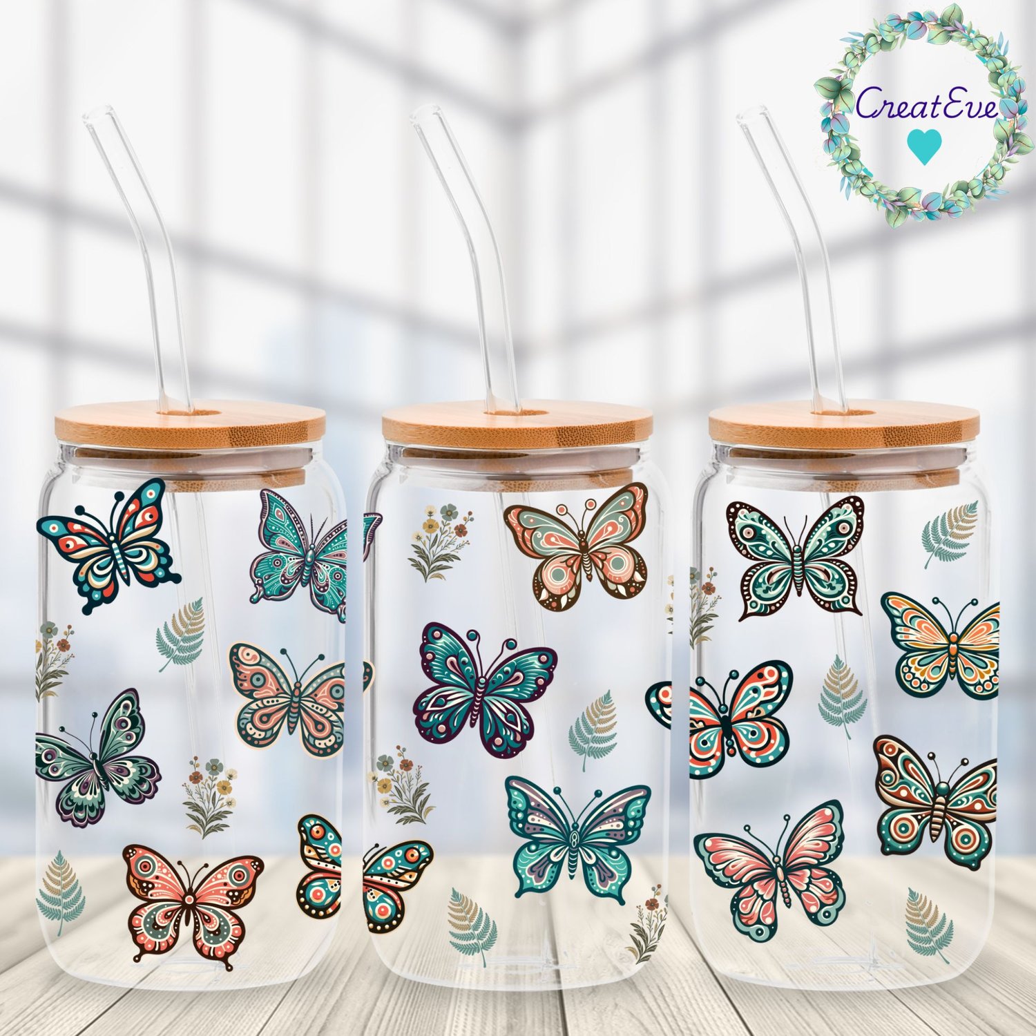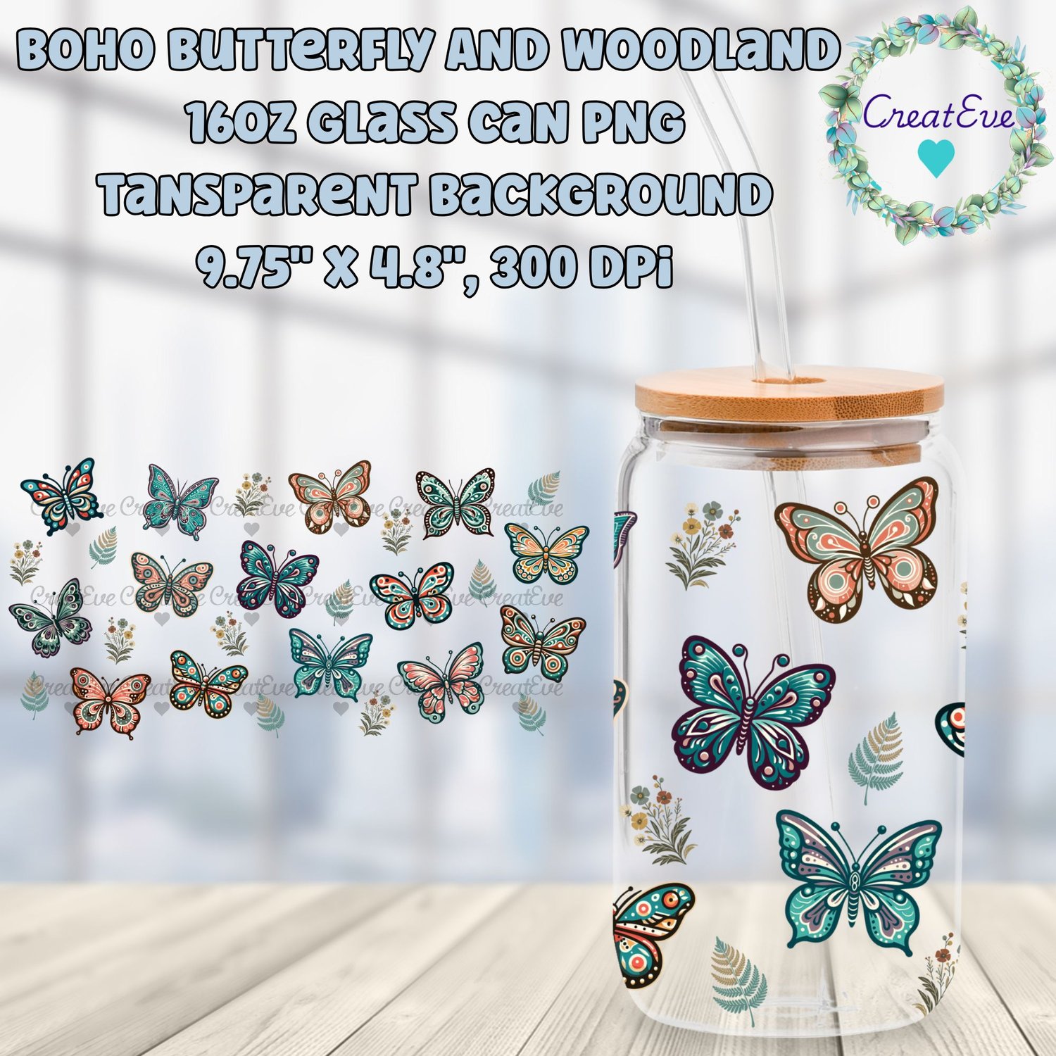 Boho Butterfly and Woodland 16oz Libbey Glass Can Wrap