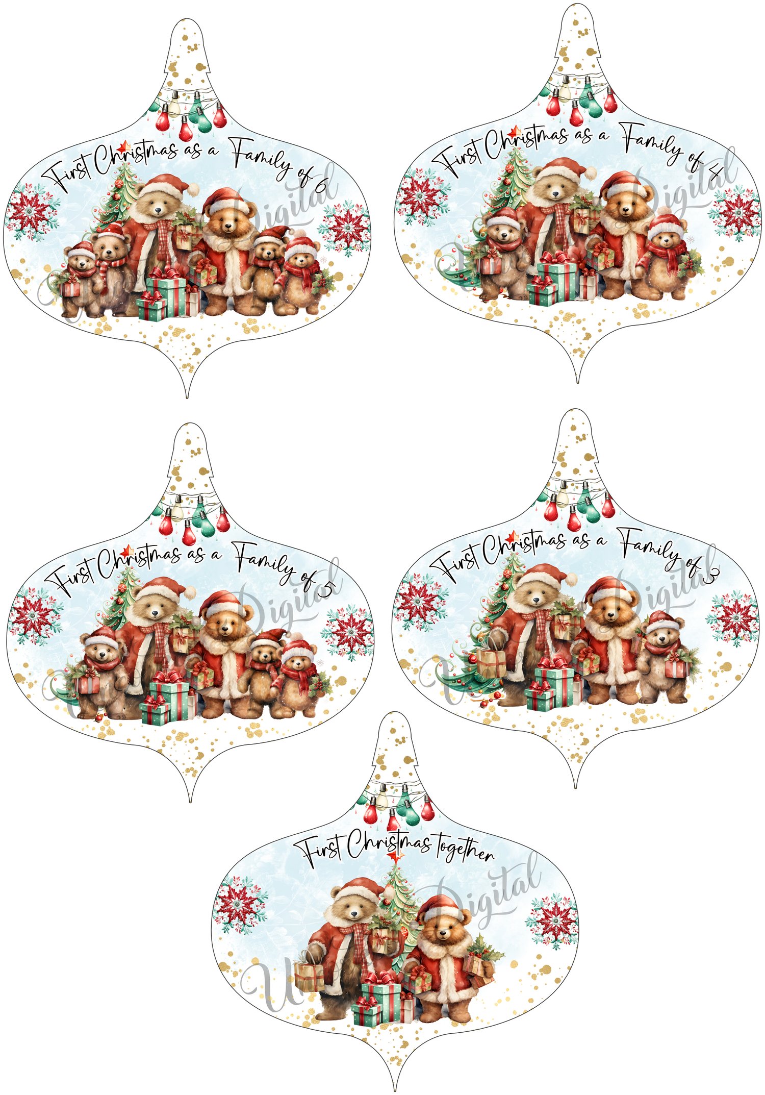 Christmas Bear family retro bauble designs x 8 (woodform)