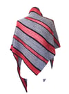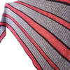 Tangled Web is an asymmetrical triangular shawl knit on the bias from one tip to the opposite edge. The shawl grows one stitch every row along the top edge and decreases one stitch every four rows along the bottom.
