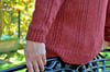 Ardales is knit in stockinette with a cable and rib combination through the body, has a ribbed neckline and a single cable running down the centre sleeves. It’s knit seamlessly from the top down using the contiguous sleeve construction.