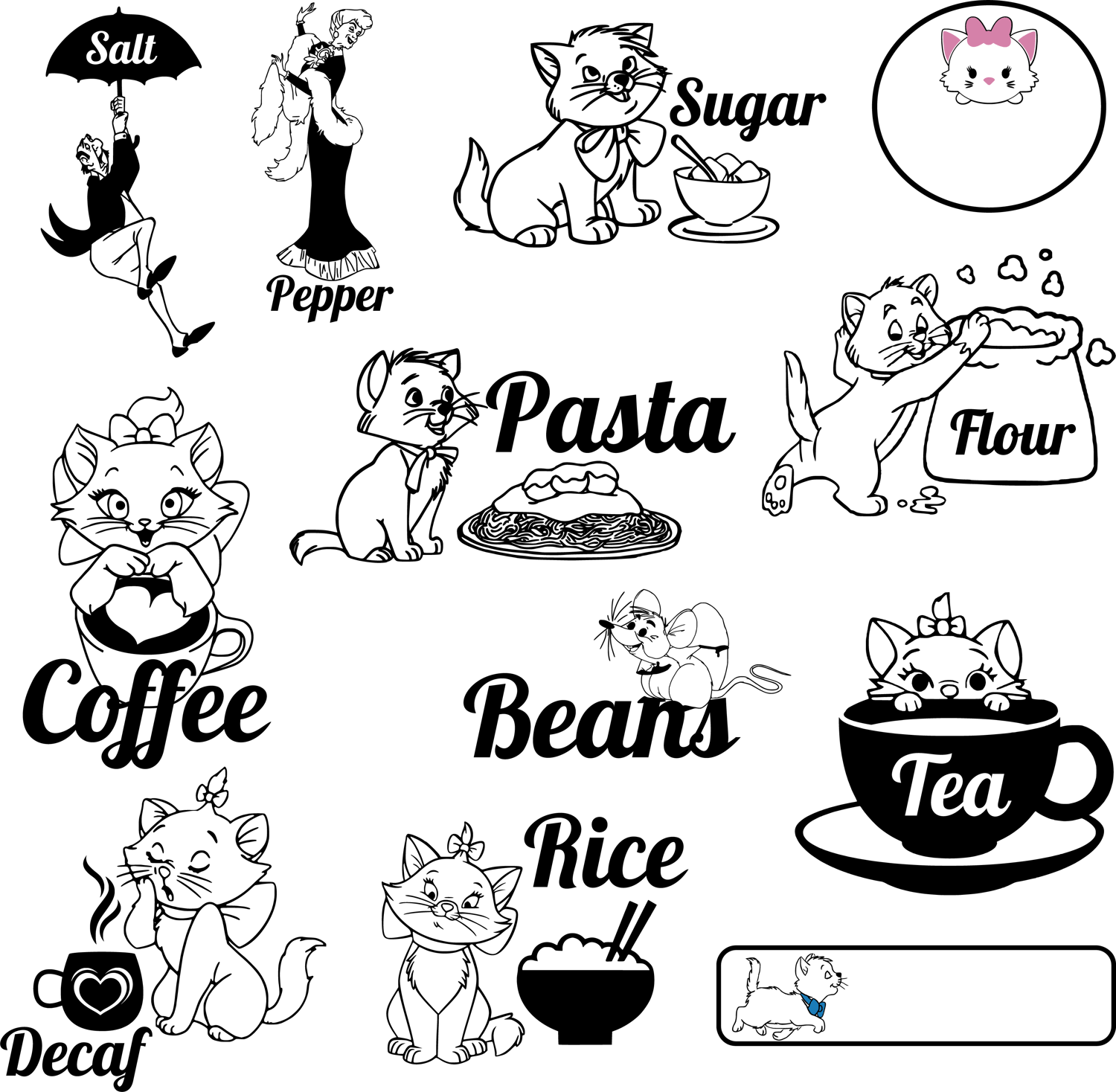 Disney The Aristocats Kitchen Labels SVG & PNG Sublimation