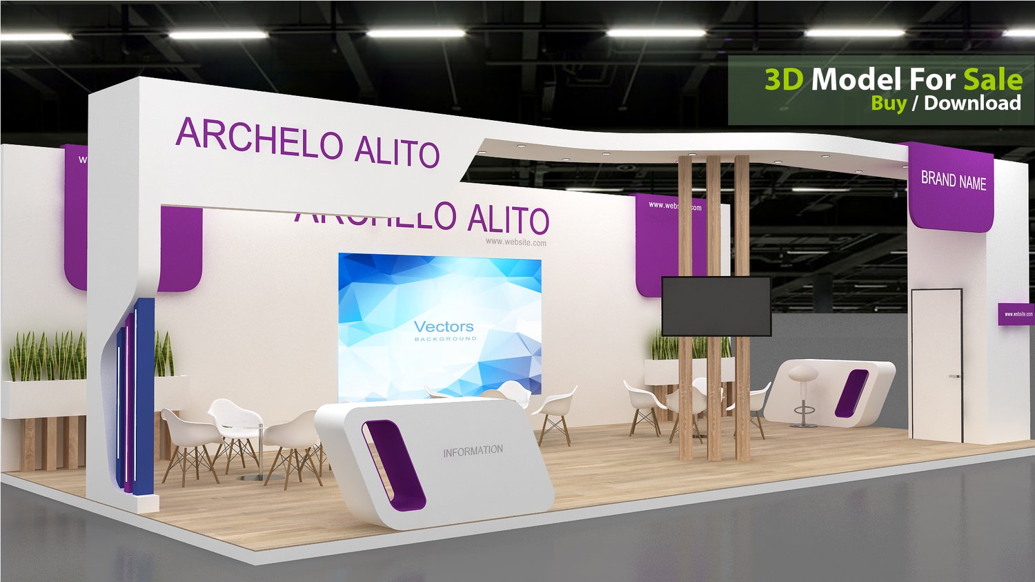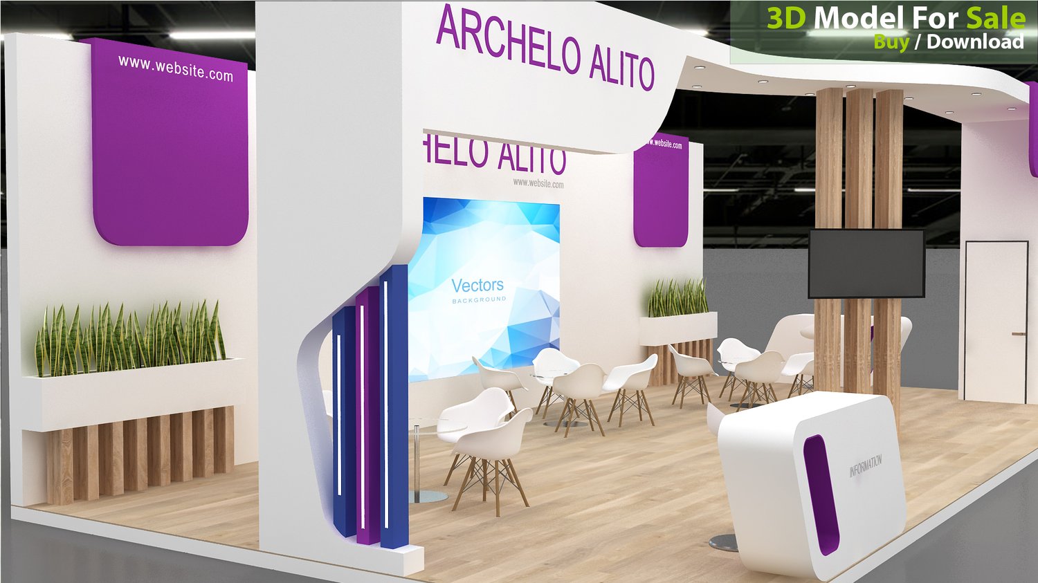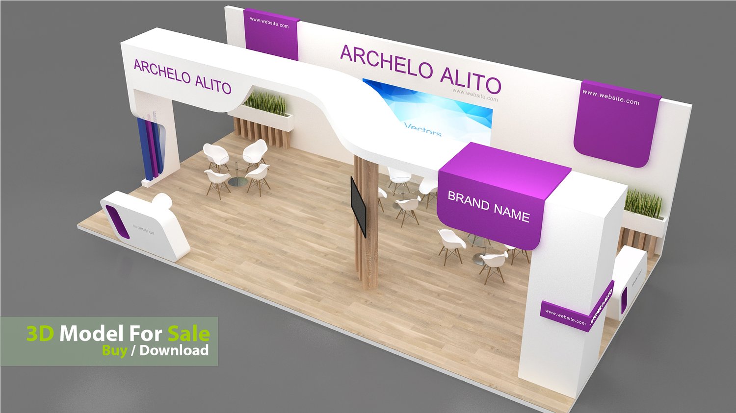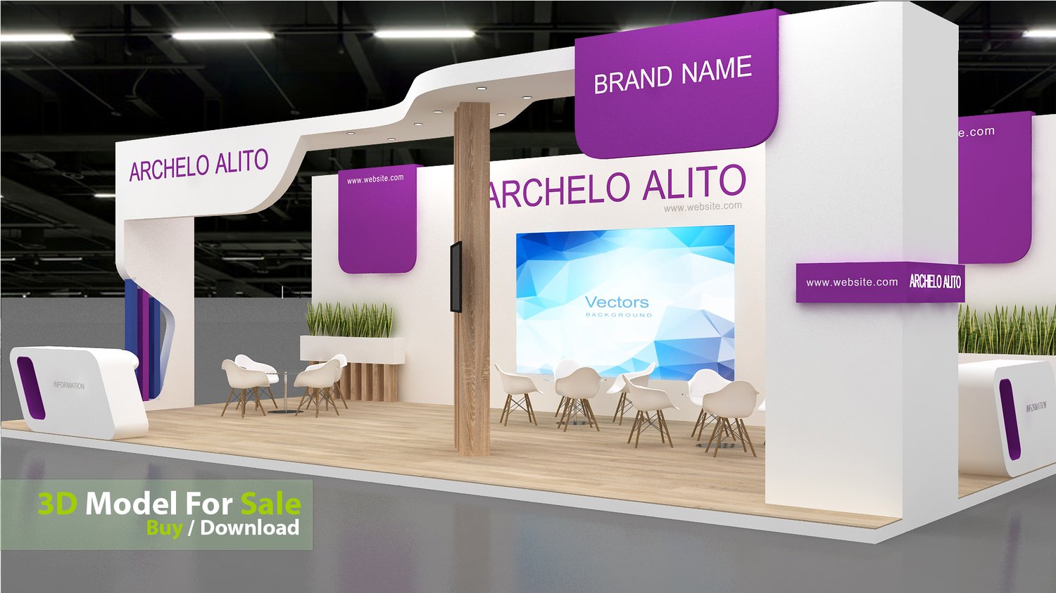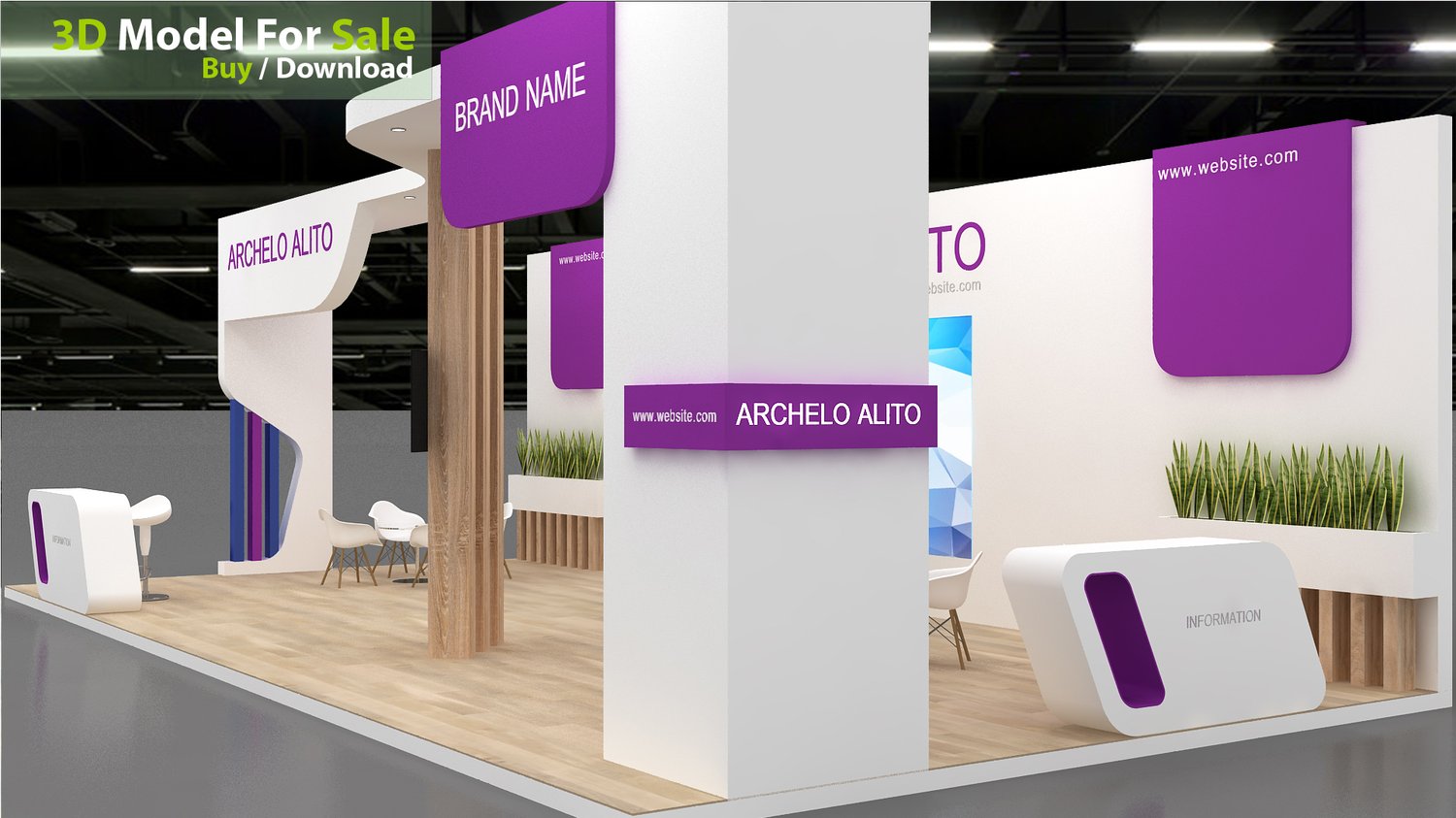 This professional 3D booth model is designed for exhibitions, trade shows, expos, fairs, and event displays.