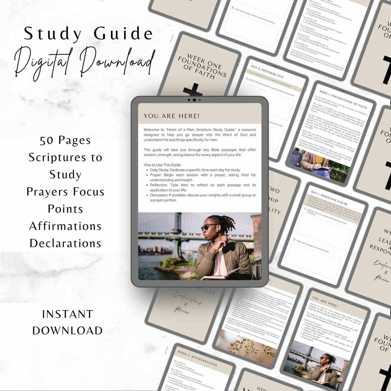 Embark on a transformative spiritual journey with the Men's Study Guide from Kenneth Colston Ministries. This beautifully crafted guide is designed to help you deepen your connection with God through daily scriptures, prompts, affirmations, and declarations. Inspired by the powerful scripture, "Be anxious about nothing. But in all things, let your requests be made known to God in prayer and supplication, with thanksgiving." (Philippians 4:6), this study guide is the perfect companion for every man seeking to grow in faith and trust in God.