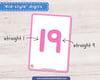 This pack includes a style of numbers that is more similar to how kids are taught to write the digits (a straight line for number one and the "q" style nine). If you prefer numbers that are written in a standard font style (a little "cap" on the number one, and a "rounded" number nine), please see: **RAINBOW NUMBERS 0-100 FLASHCARDS: Standard style digits**