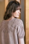 In this cardigan, there's a bit of a challenge with some lace, but the result is wonderfully summery. After the lace pattern, short rows are worked to raise the back higher than the front. The cardigan has short sleeves.The length of the cardigan can be easily adjusted as it is knit from the top down.