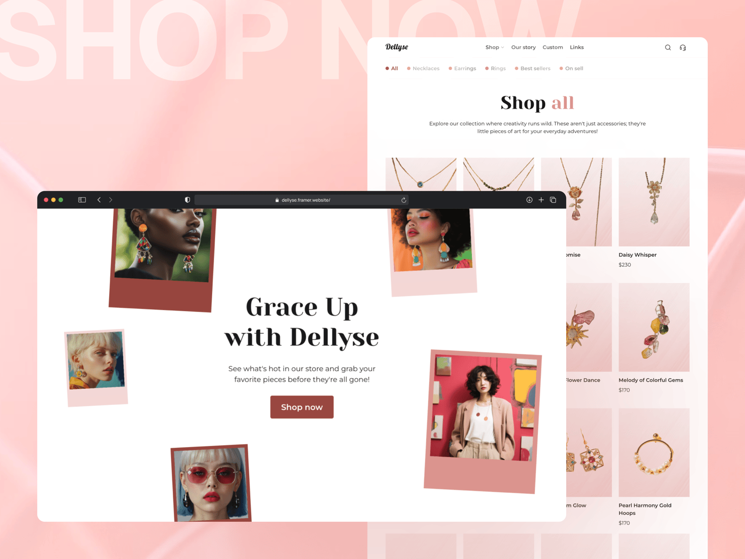 Dellyse, a Framer template ideal for e-commerce jewelry brand and beyond.