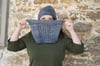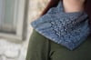 Worked in the round, Nestlow Cowl begins and ends with 2x2 ribbing with twisted stitches. The body of the cowl has alternating panels of stockinette stitch and a 24 stitch lace panel with twisted stitches.