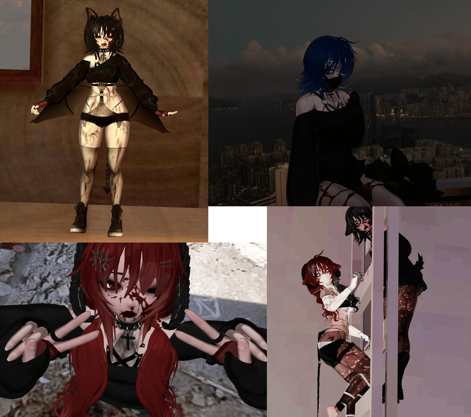 Head, Base, Eye Texture, Bangs, Pigtails, Short Hair, Messy Bun, Skeleton, Body Blood, Face Blood, Tattoos