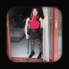 Miki put on a black miniskirt and black fishnet stockings.
