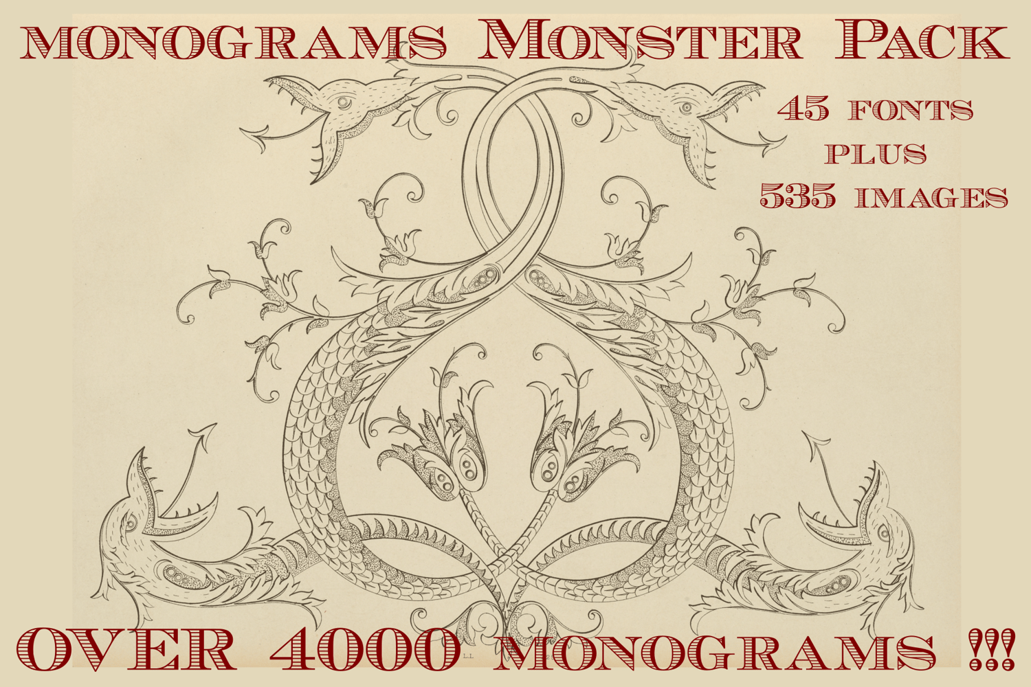 Immerse yourself in the vast universe of intricate design with this treasure trove of over 4000 unique monograms! This expansive collection doesn't hold back when it comes to variety. Channel vintage charm, the reserved elegance of neoclassicism, the airy, flowy qualities of Art Nouveau, or the ornate grandeur of Victorian style with ease. With 1560 monograms artistically captured in image formats, your design choices are limitless. To add to the mix, you will also find 45 specifically tailored functional fonts embedded with monograms for immediate use. Whether you're crafting a logo, creating an invitation, or simply wanting to express yourself through typography, this collection offers you an incredible range of styles and formats to work with. Delve into this veritable feast of design elements and let your creativity run wild!