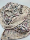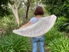 Blackwattle’s beautifully speckled alpaca yarn led me straight to curves and asymmetry. Tunisian crochet short rows have been used in combination with rows of single crochet to achieve complementary curves.