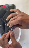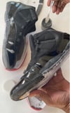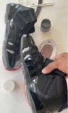 Use patent leather paint and sealer to cover the damaged area to create the finished look. Take a look at the patent leather hand painting repair kit for more photos and details