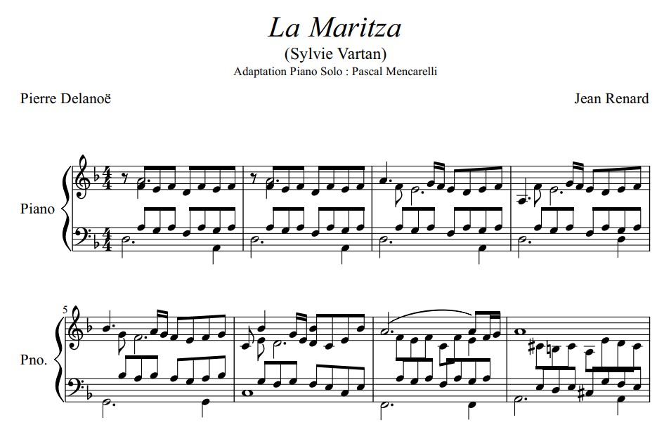 Sylvie Vartan - la Maritza - Partition Piano Solo