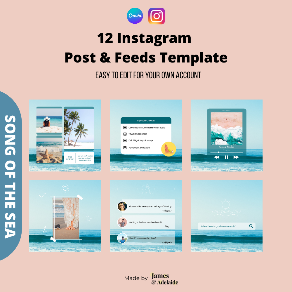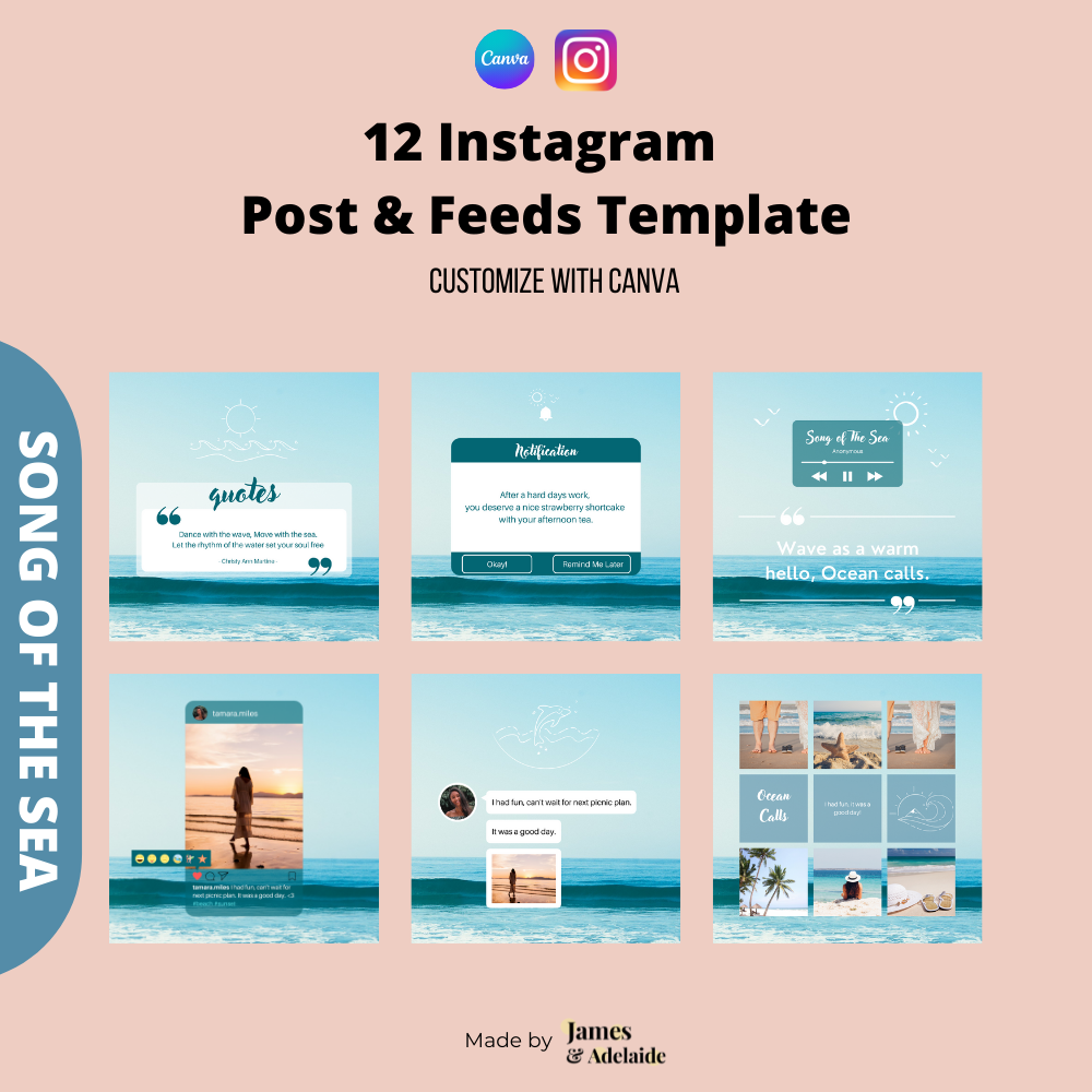 12 Instagram Post & Feeds Template | Song of The Sea | Canva based Template | Canva Template for Instagram