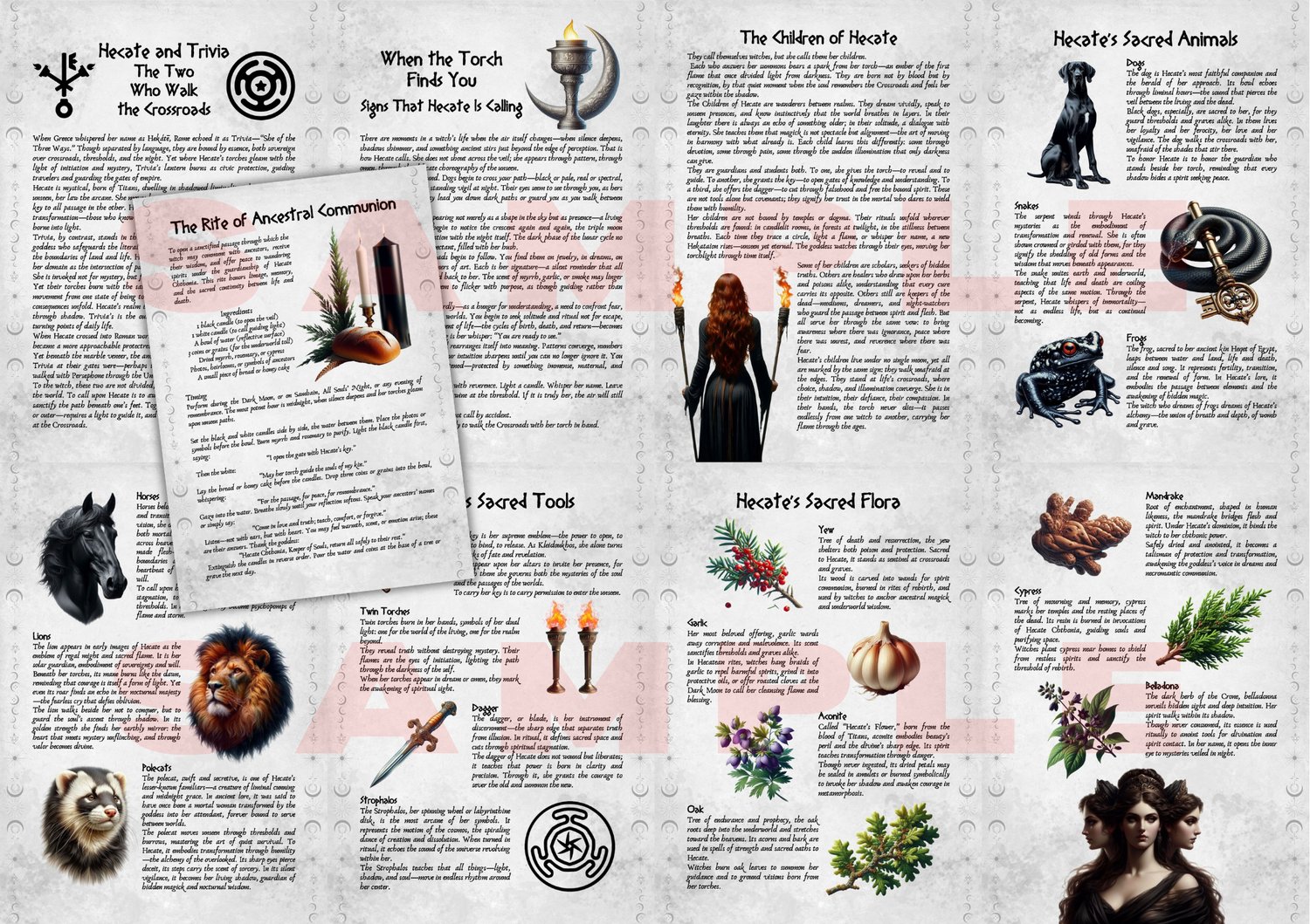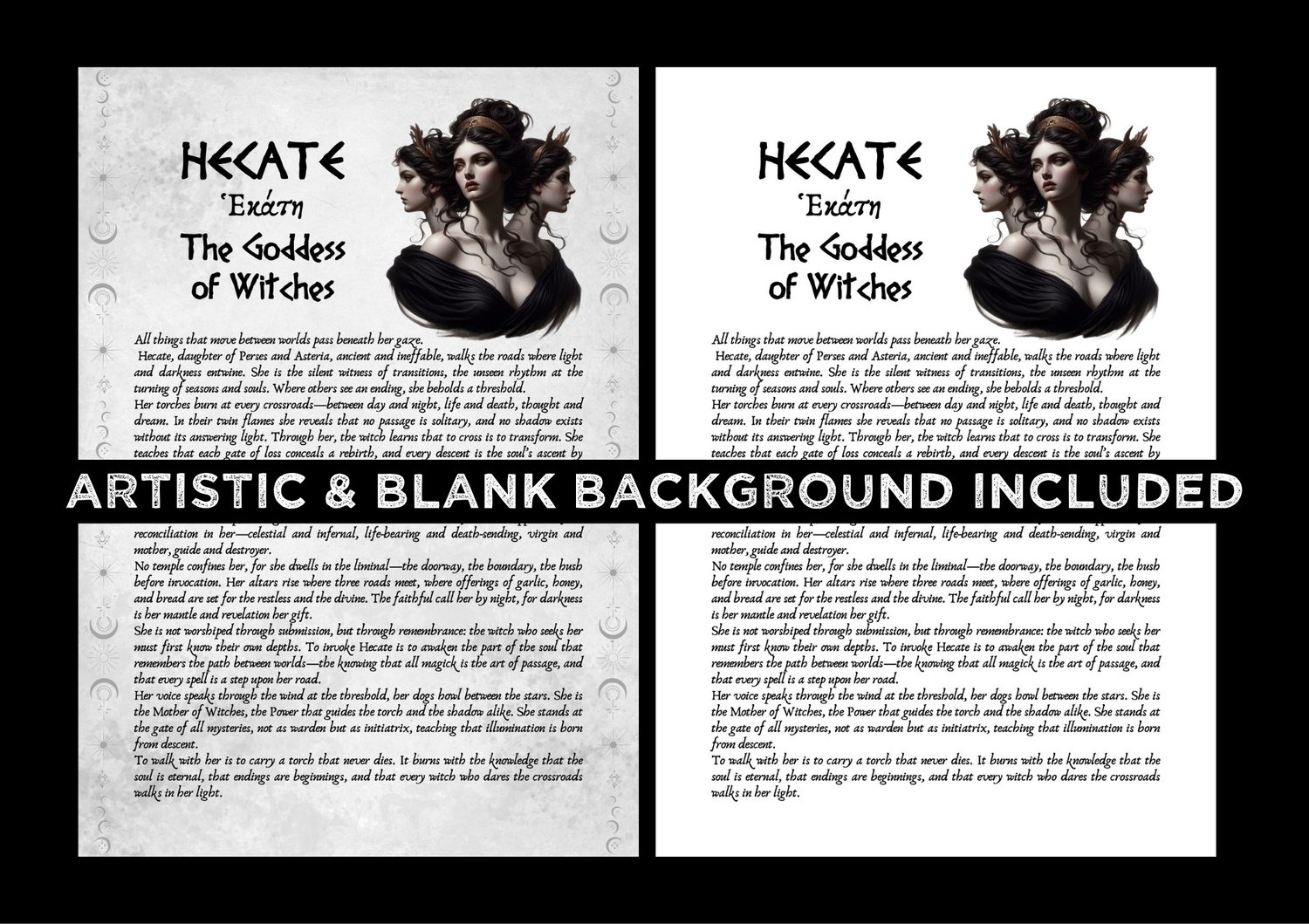 Unveil the mysteries of the Goddess Hecate with this digital printable grimoire pages, adorned with exquisite artwork and steeped in sacred lore.