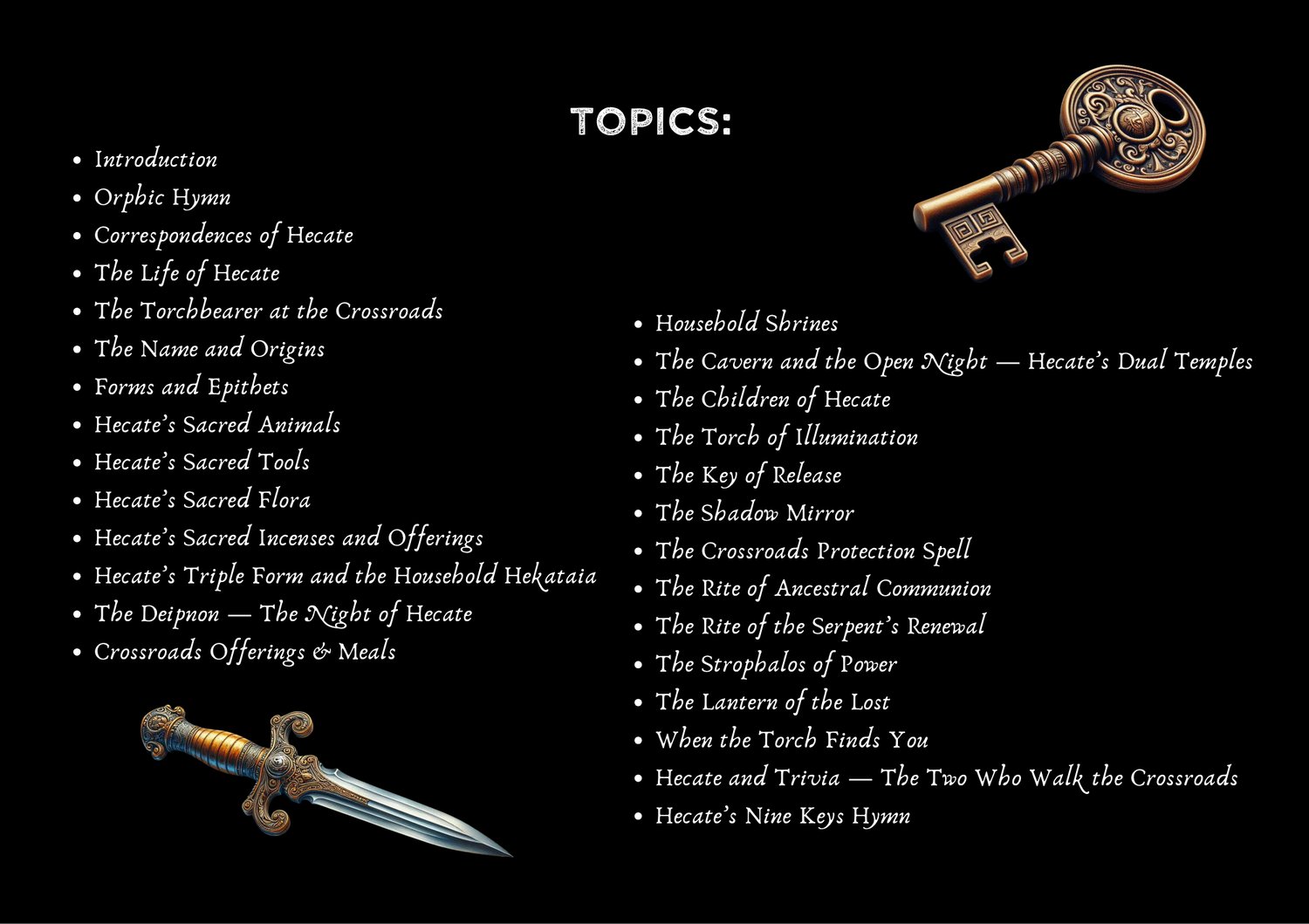 Rituals, spells, hymns, and rites await! Unlock Hecate’s wisdom at the crossroads.
