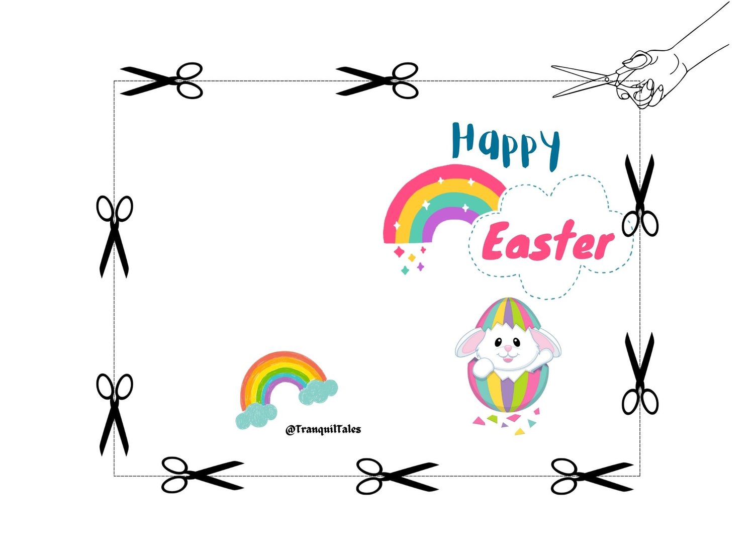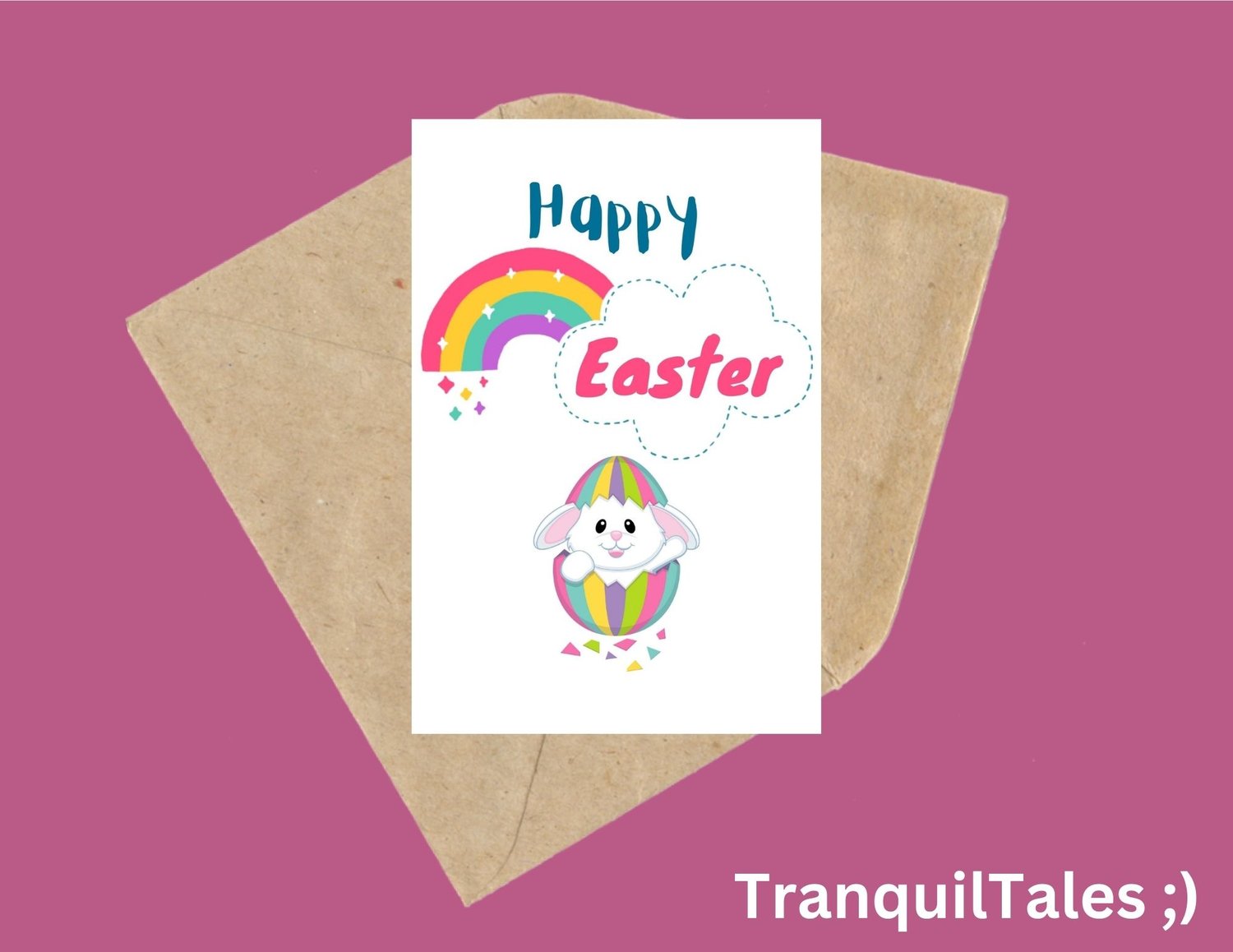 Easter with Rainbow Bunny & Egg Card - 4" x 6" inches - Easter card - PDF File