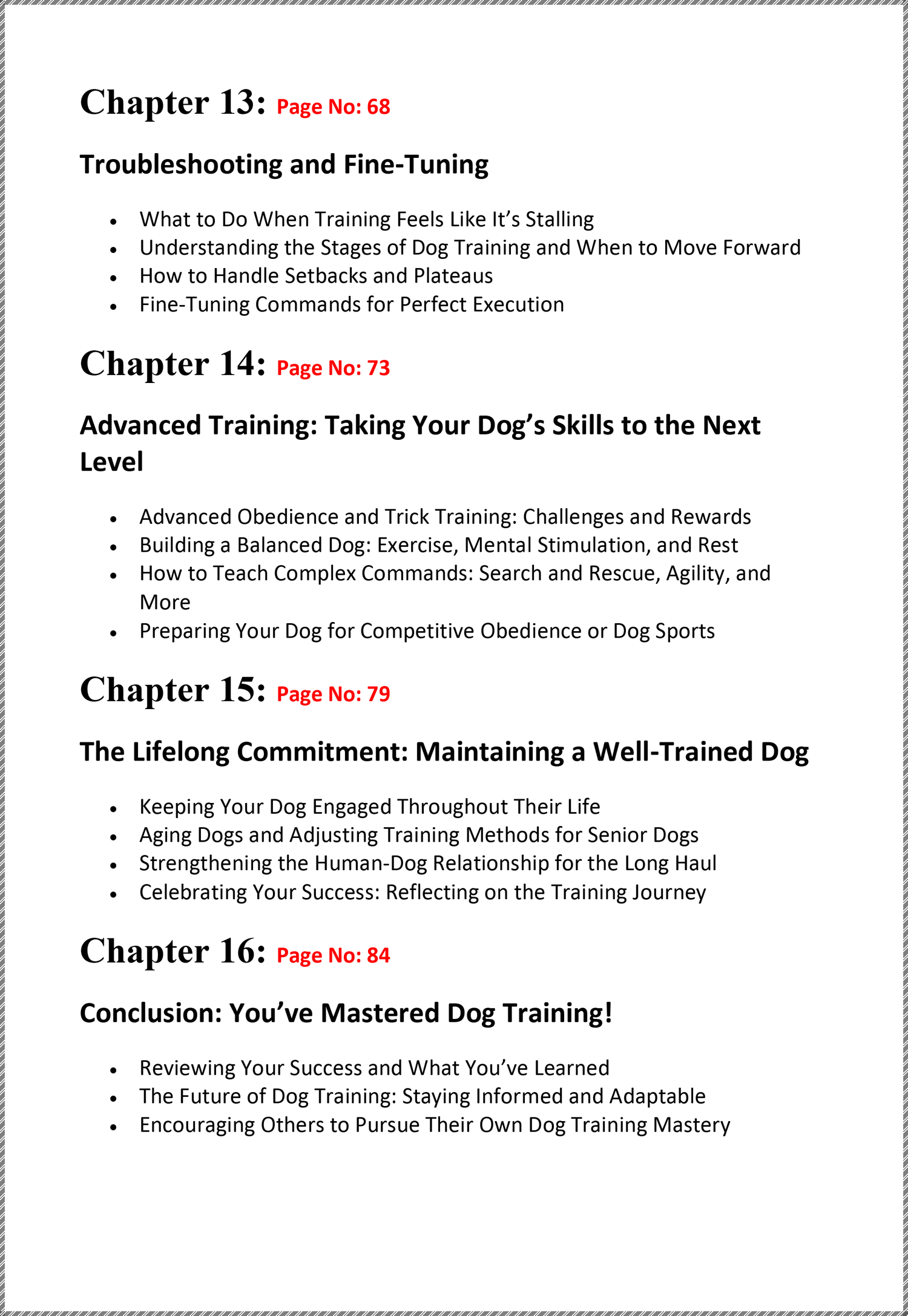 From puppies to senior dogs, this eBook is packed with 87 pages and 16 chapters of expert advice, covering everything you need to know for raising a well-behaved and healthy dog. Whether you're a first-time owner or an experienced pet parent, you'll get practical, step-by-step guidance on training, care, and handling any breed or behavior.
