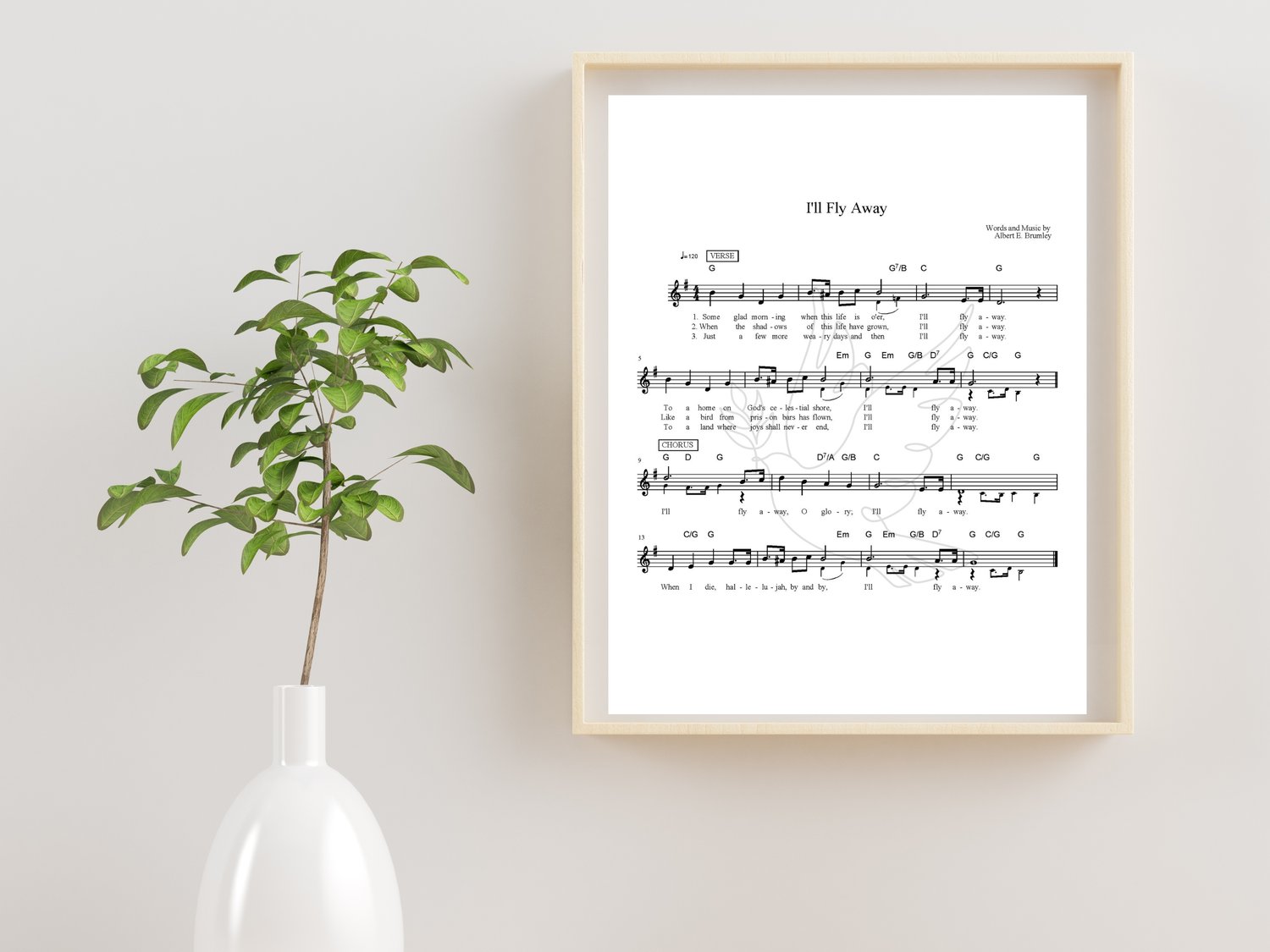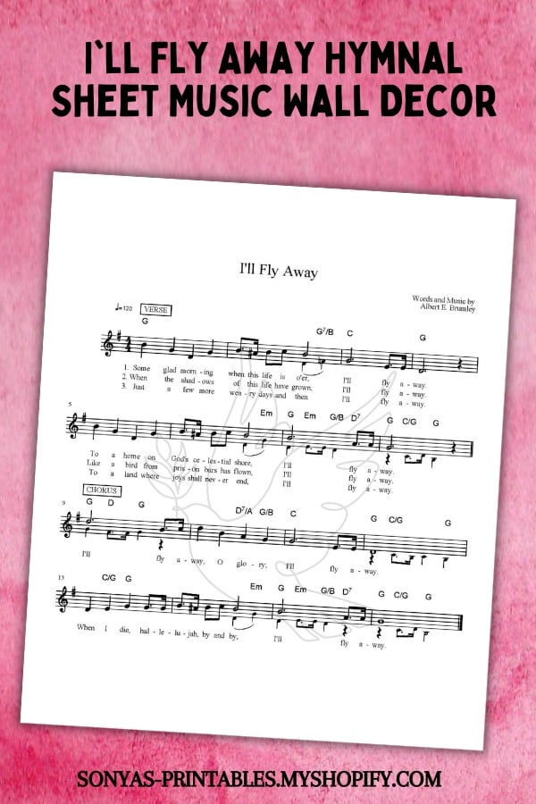 I'll Fly Away ~ Hymnal Sheet Music Wall Art ~ This is a wonderful hymn and it's a beautiful piece of religious sheet music art. ***This is not the full hymnal, it is wall decor*** This hymnal wall art is an instant download that allows you to print yourself on an 8.5 x 11-inch paper of yourself and frame.