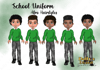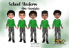 Instant digital download of our Cute School Boy with curly Afro in Light Green Uniform PNG (54 PNG’s)