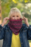 Little boxes travel along striped lines all around the Boxcars Cowl. This project is knit in the round with a combination of stripes and mosaic techniques. The slipped and purled stitches give curves to otherwise straight lines, and the lofty yarn helps keeps textures well-defined.