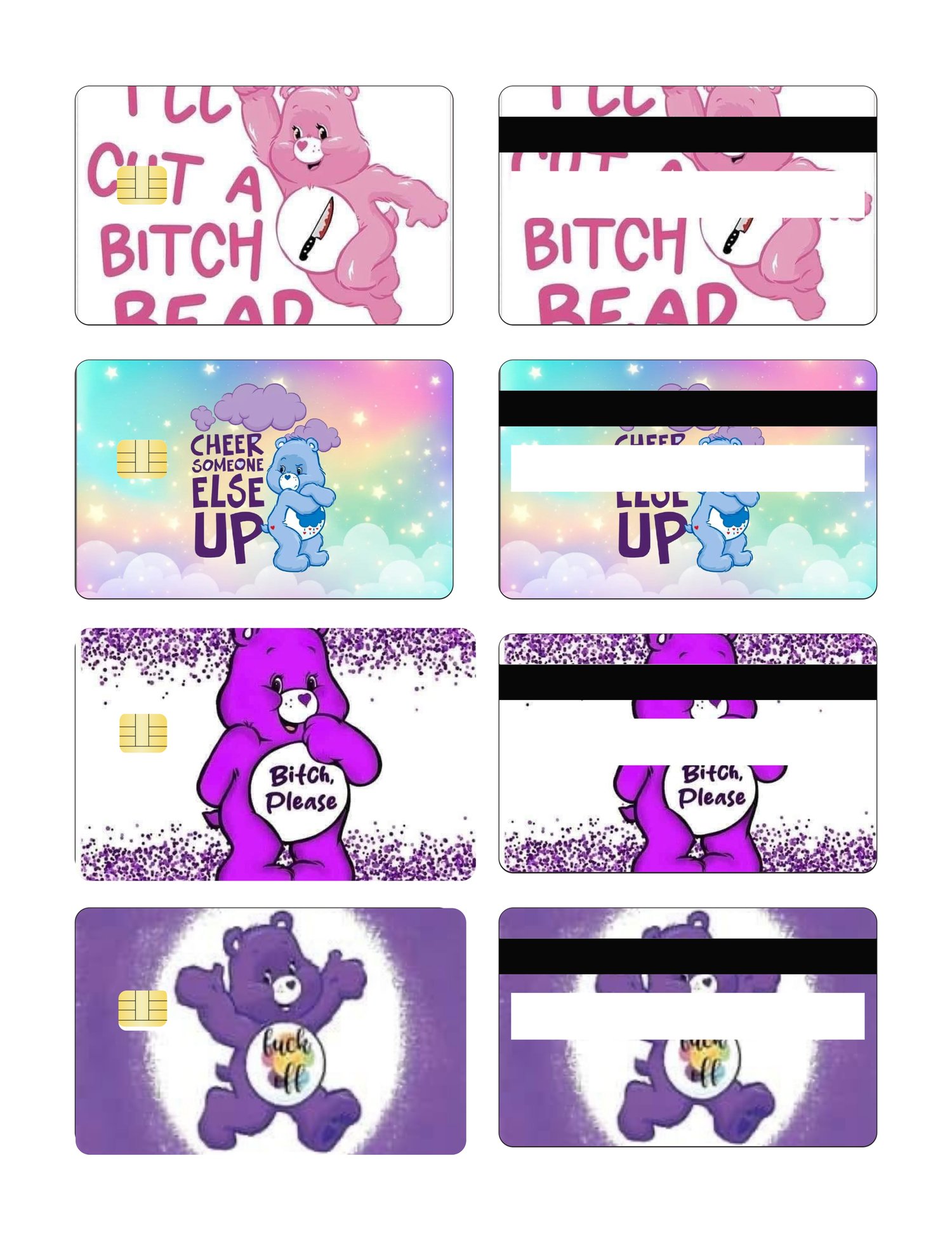 12 custom Swear Bear Credit/Debit Card Skins