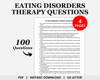 Designed to enhance client engagement and drive positive change, this therapy resource offers a collection of eating disorders therapy questions. Tailored to the principles of eating disorders, these therapy questions will guide your sessions towards productive conversations and transformative outcomes. These eating disorders questions are made to elicit insightful responses and encourage clients to explore their goals and aspirations.