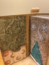 Introducing our festive refillable travel notebook set, sized at 4.5 x 8.5 inches, perfect for your holiday adventures. With three pamphlet-style books—blank, lined, and dotted—you're equipped for creative expression or organized planning. Each notebook captures the spirit of Christmas with charming holiday decorations adorning the pages.