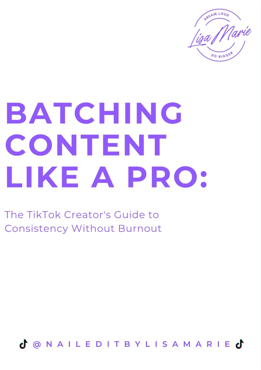 Batching Content Like A Pro is your step-by-step guide to mastering the secret weapon of successful TikTok creators: content batching. Inside, you'll learn how to plan, film, and schedule a weeks worth (or more) of high performing TikToks in just one or two focused sessions so you can stay consistent without the constant pressure to create.