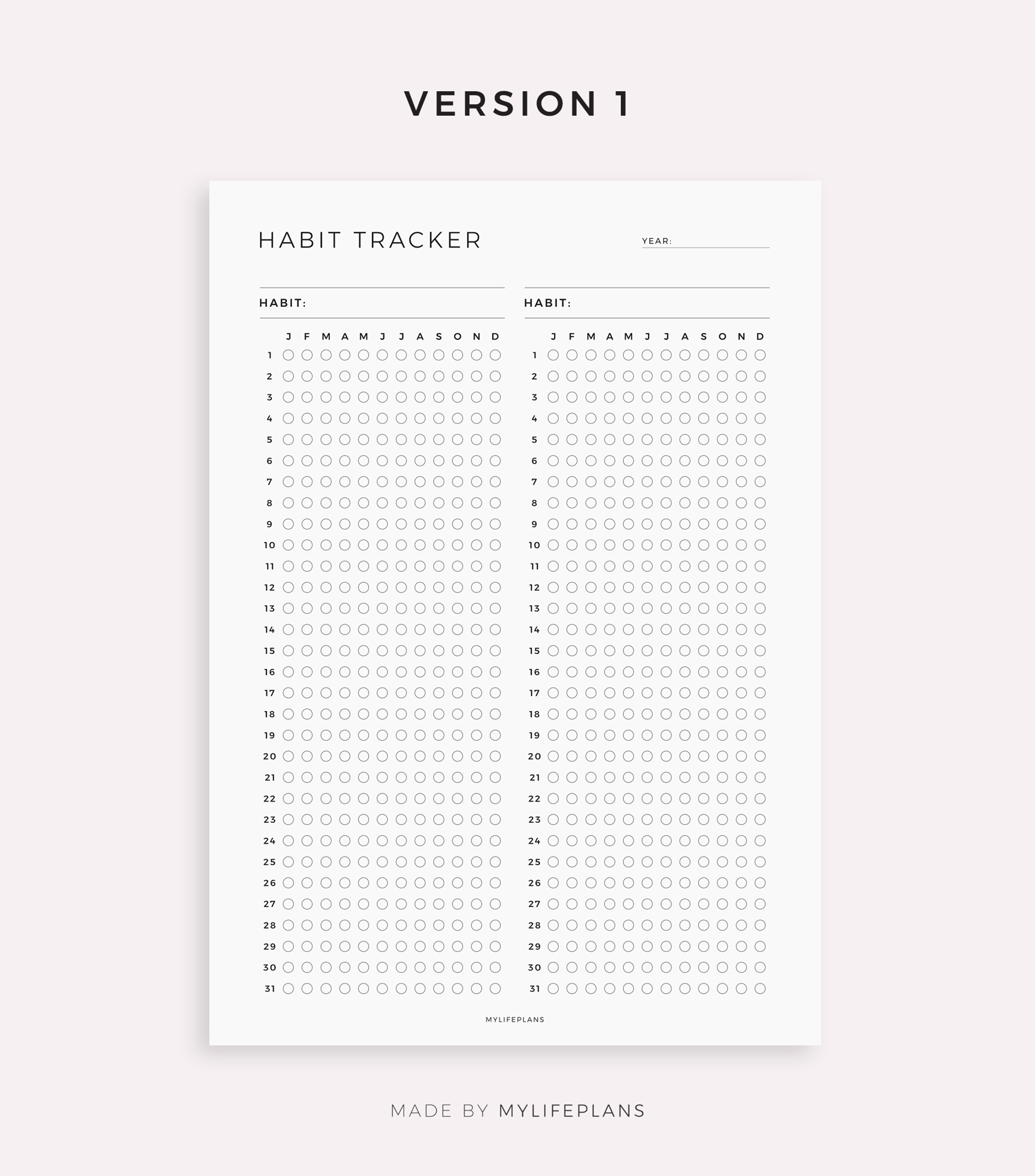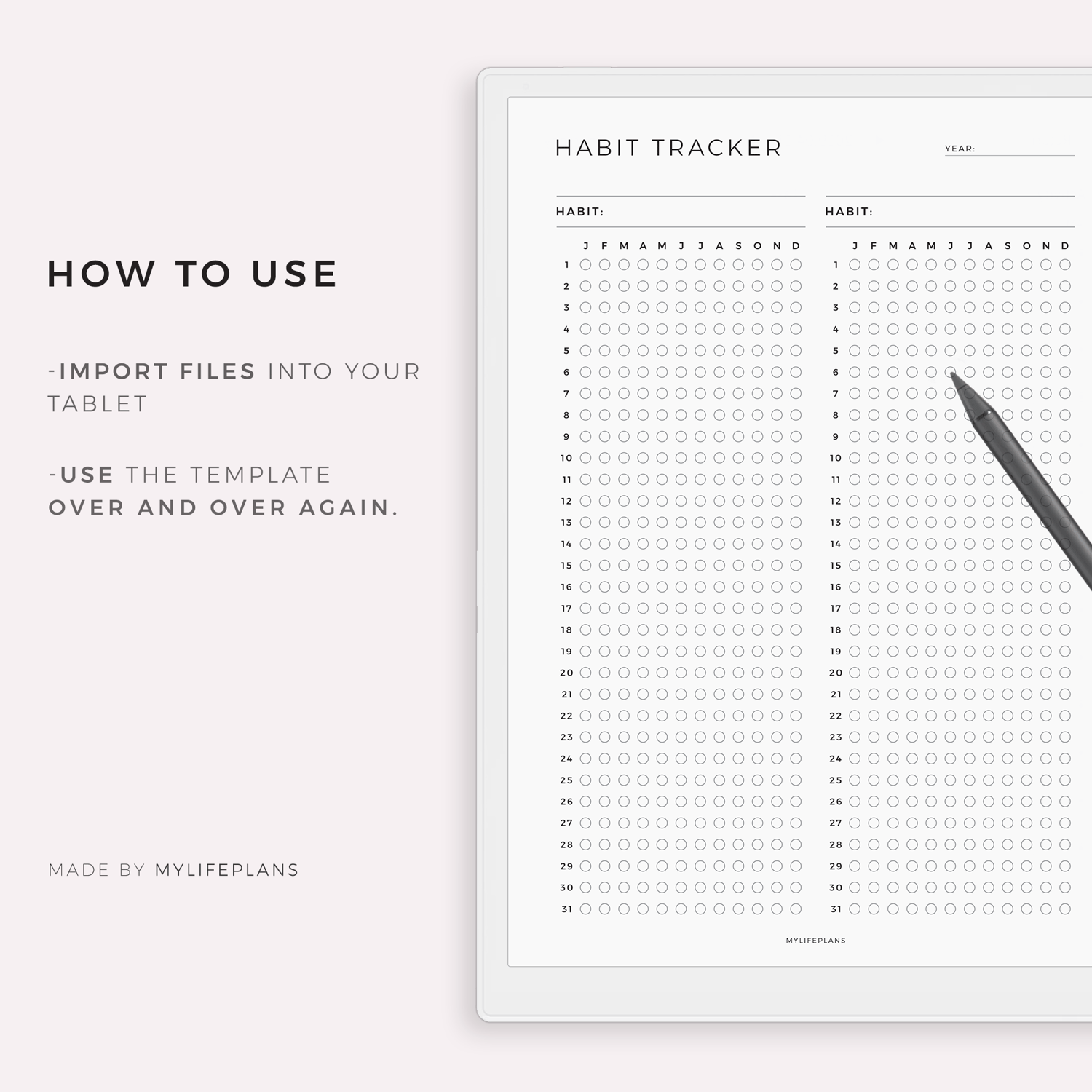 Yearly Habit Tracker Template for Remarkable, Supernote, Kindle Scribe, Boox, Kobo