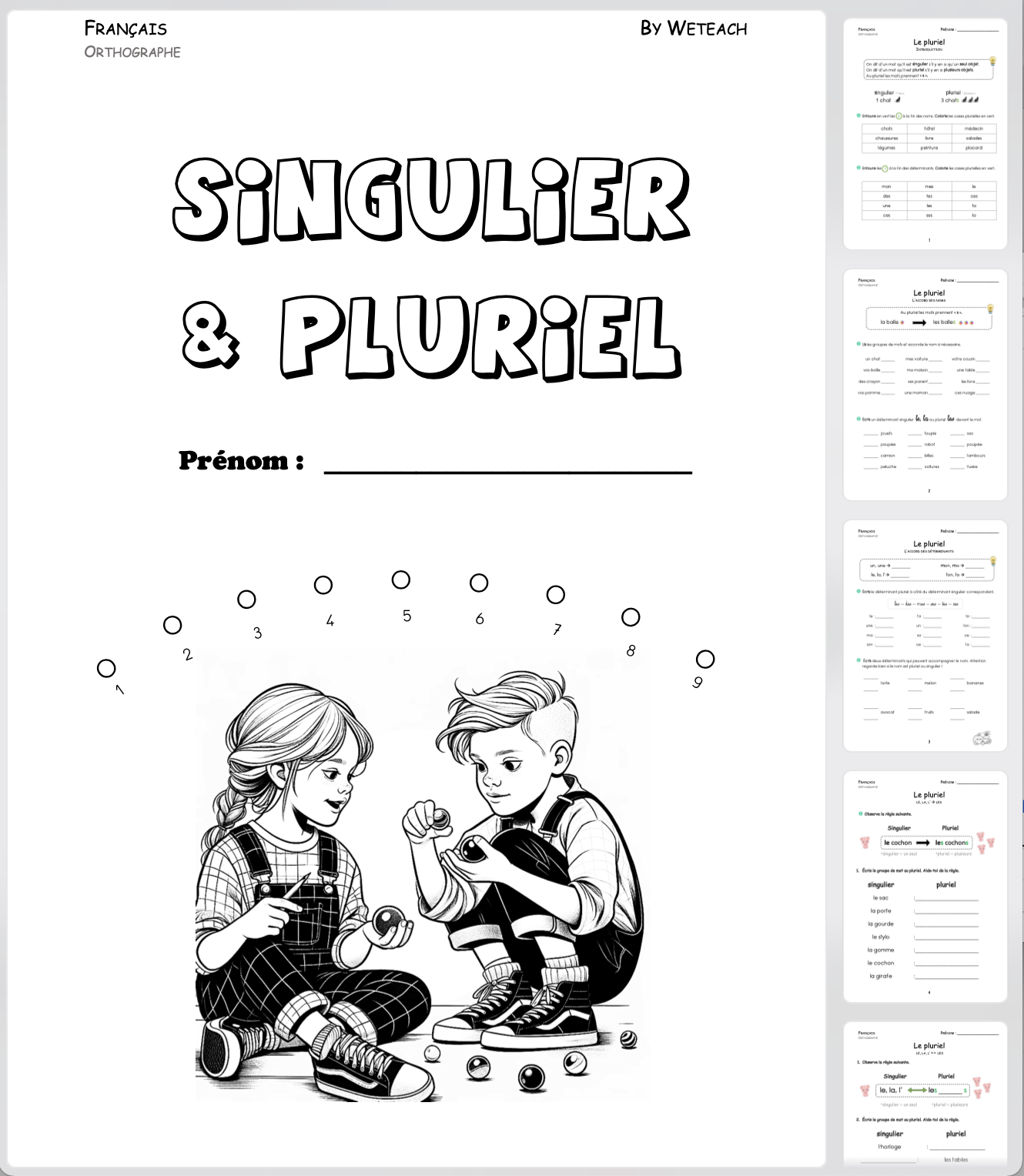 Conçu pour être progressif et intuitif, il accompagne les enfants les aidant à construire une base solide dans la compréhension et l'application du pluriel et singulier.