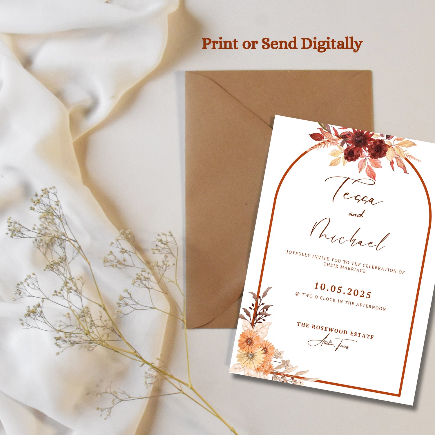 - Or share your rust wedding invites digitally via email, text, or social media