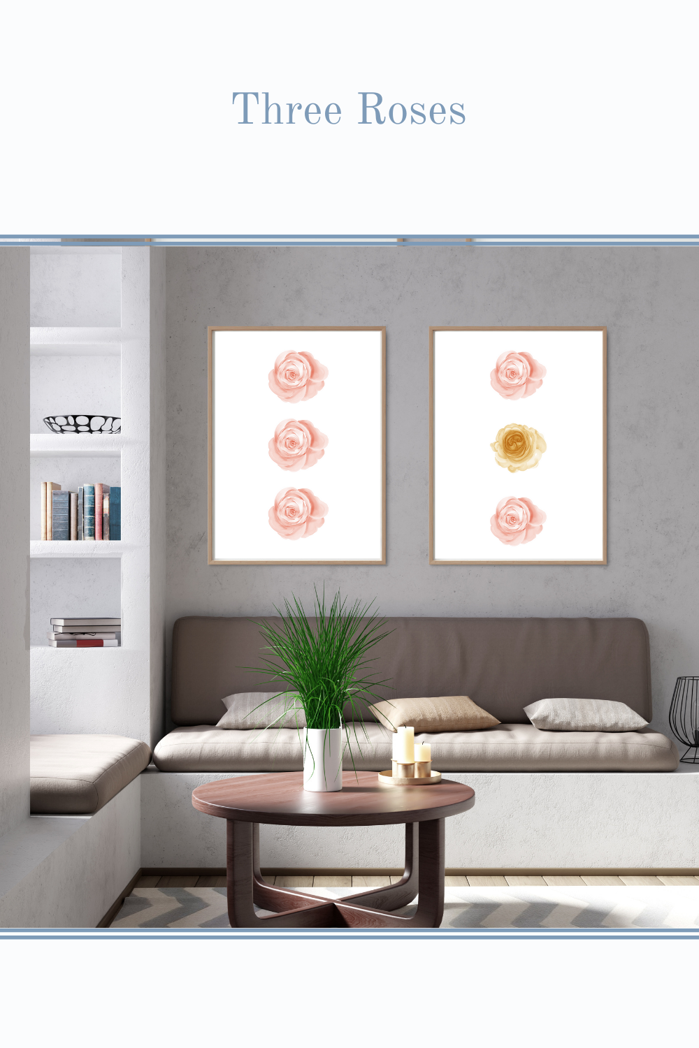 Three Watercolor Roses in salmon pink colors. You will receive one free print (bonus print) of three roses in salmon pink color and yellow color, see product images.