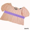 - Style: Cropped; off‑shoulder; ruffled neckline with center bow; puff sleeves