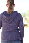 The Artist Hoodie is worked almost seamlessly from the bottom up. The sleeves and body are worked in the round from the cuff to underarm. The body and sleeves are then joined and worked in the round until the v-neck. V-neck shaping and hood are worked flat. Pouch is worked flat and sewn on.