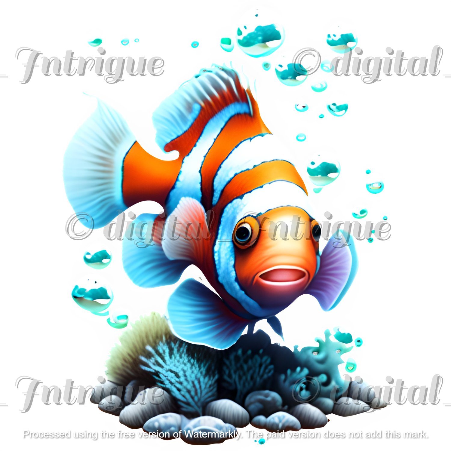 Sea Turtle and Clown Fish Sealife Digital Artwork and Clipart