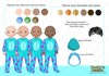 four different skin tones, three eye colours and 6 hair colours)