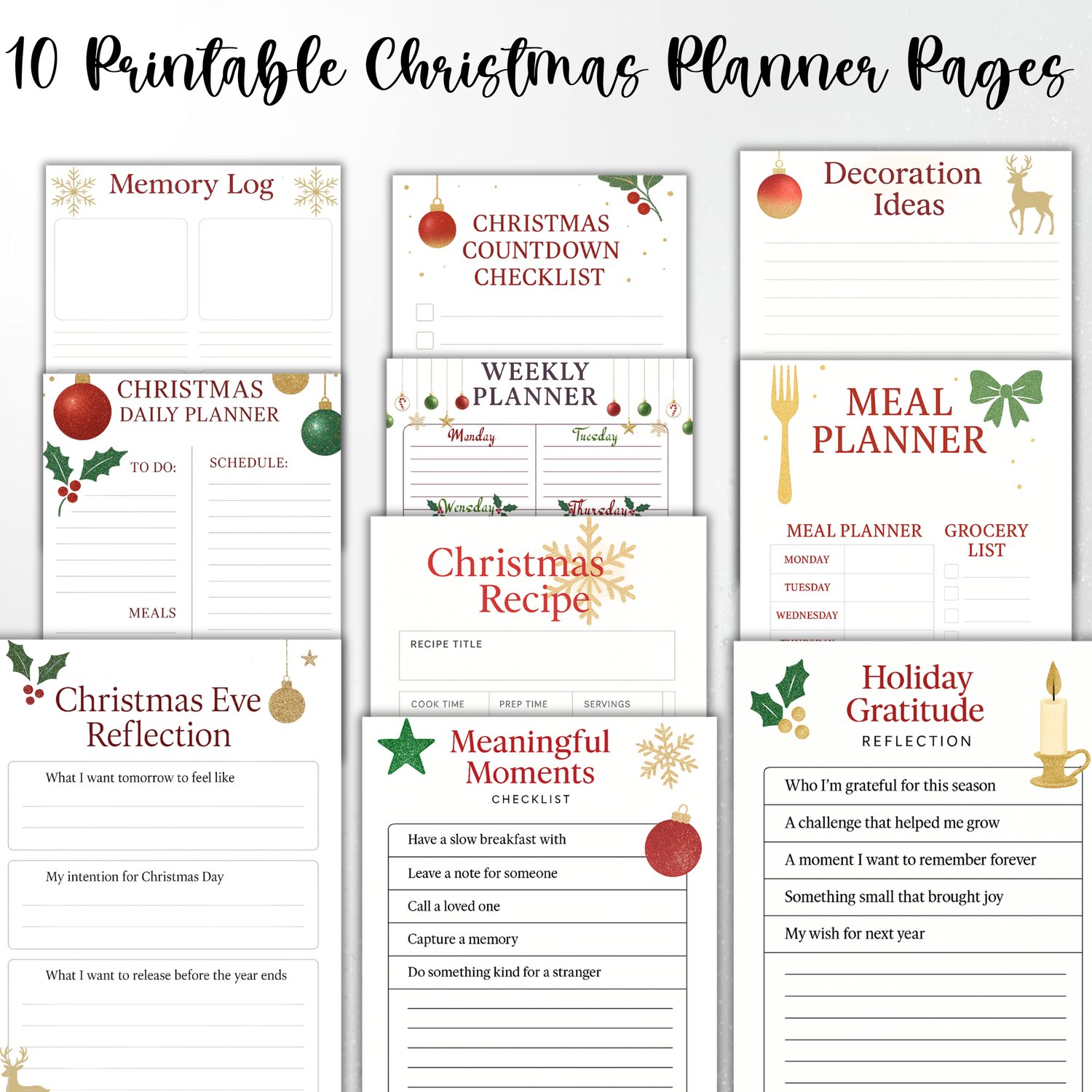 Christmas Printable Planner Pack | 10 Holiday Pages | Minimal Glitter Design