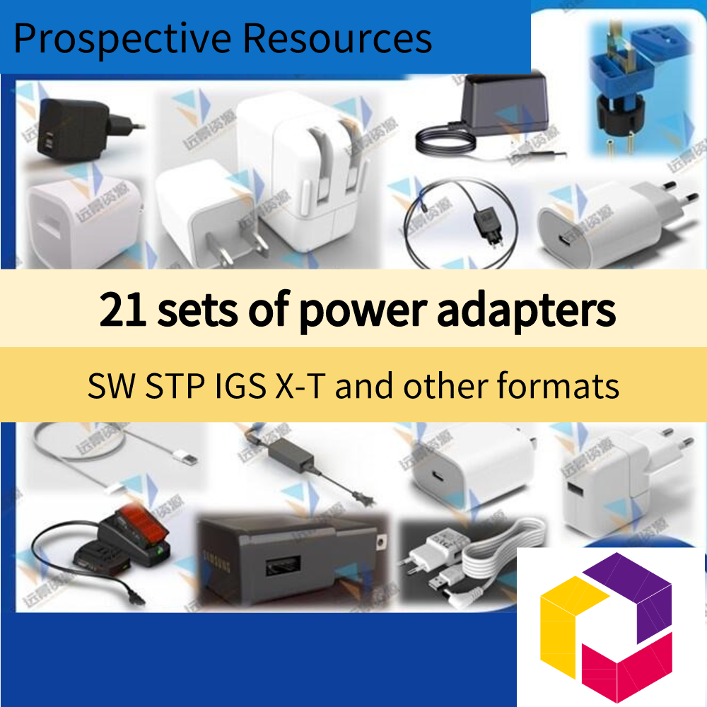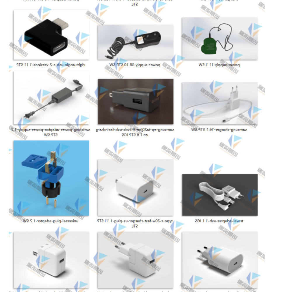21 sets of power adapters 3D models, charging plugs and sockets 3D drawings