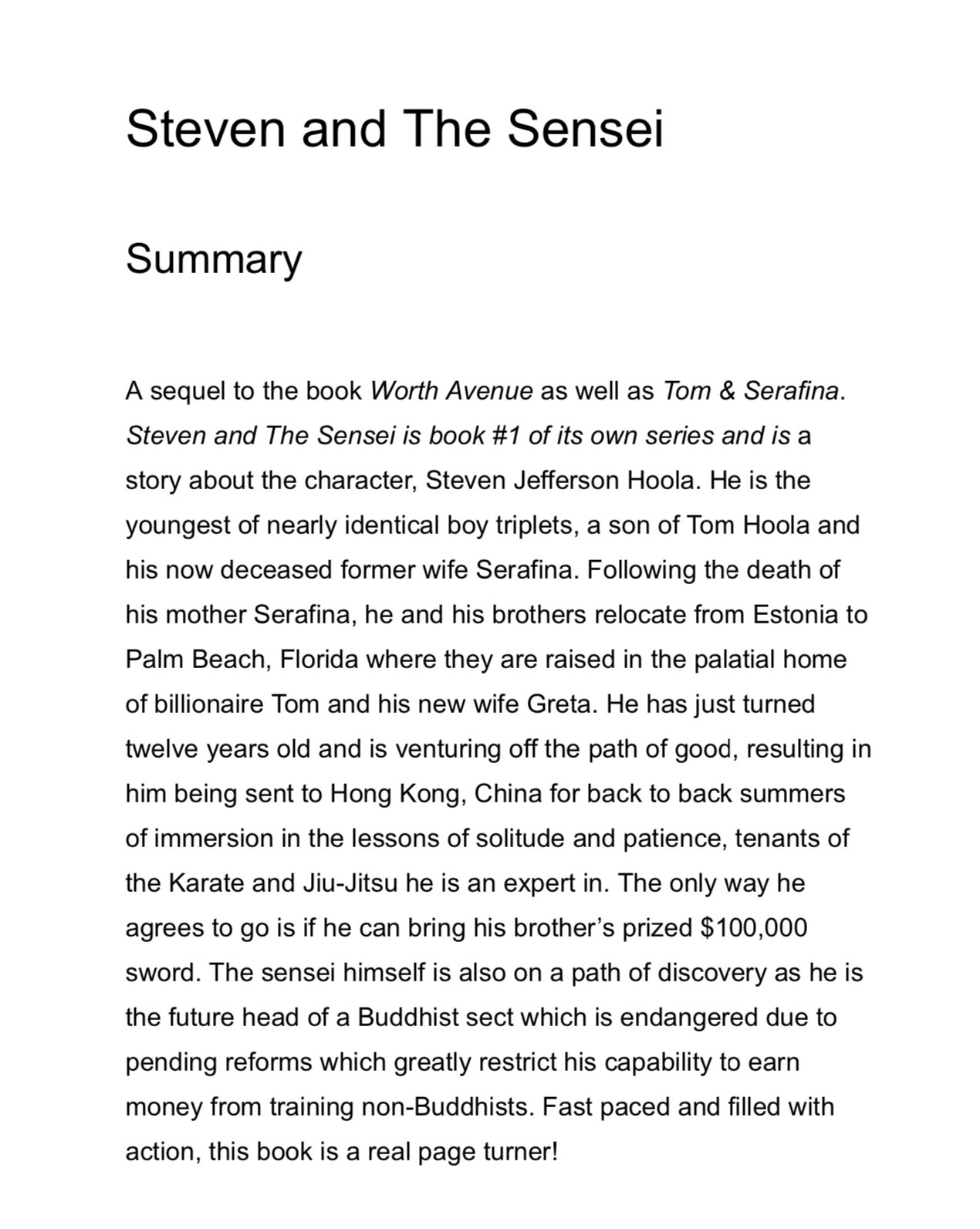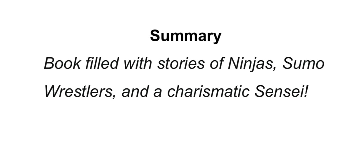 Book filled with martial arts intensity along with stories of Ninjas, Sumo Wrestlers, and a charismatic Sensei!