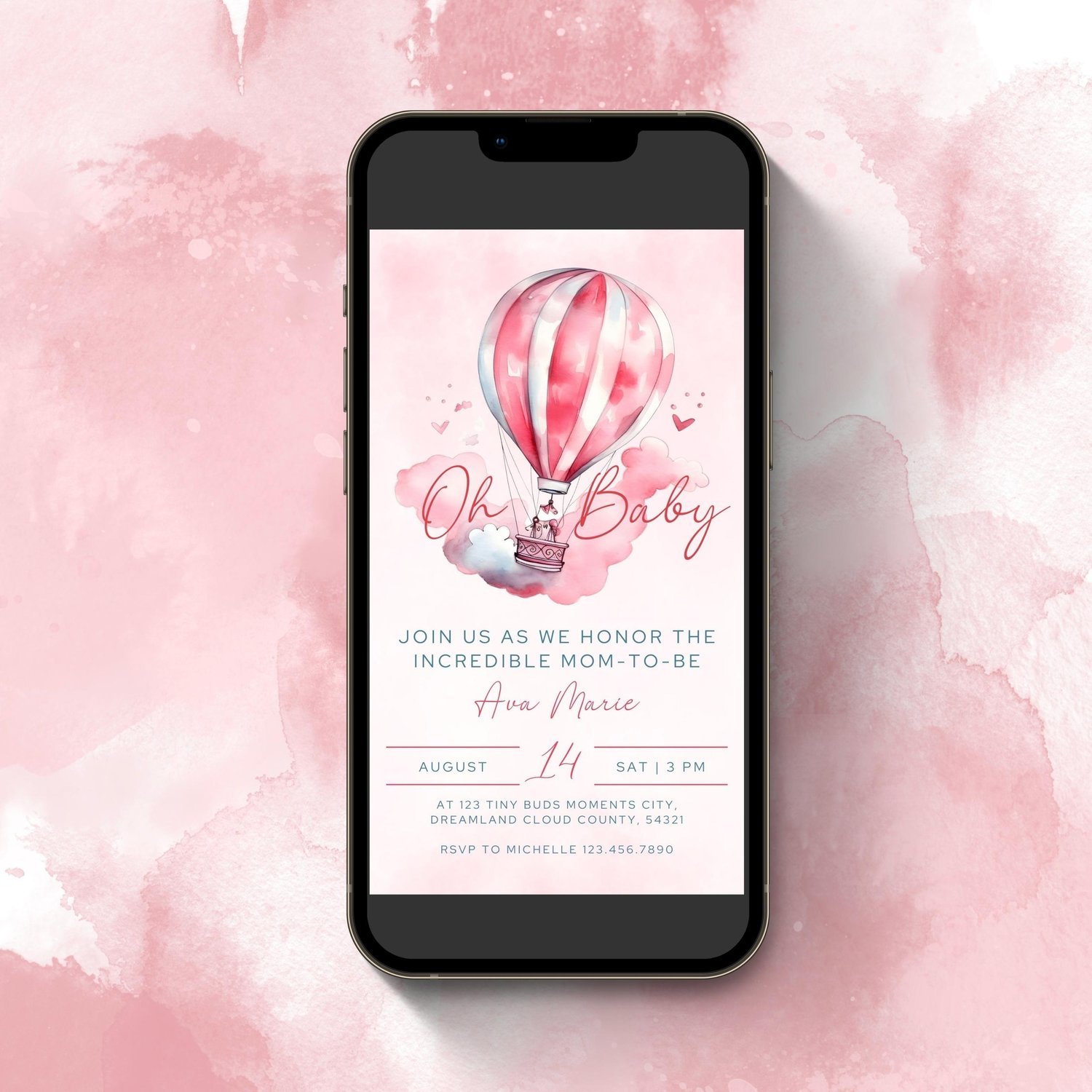 • This is a static digital invitation template for a baby shower.