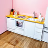 This project will allow you to create a set of miniature kitchen cabinets, including a sink and faucet, in a 1:6th scale (for Barbie, Blythe, Monster High and most fashion dolls).